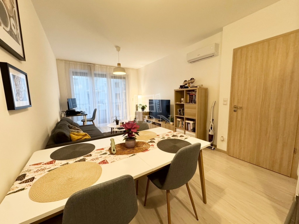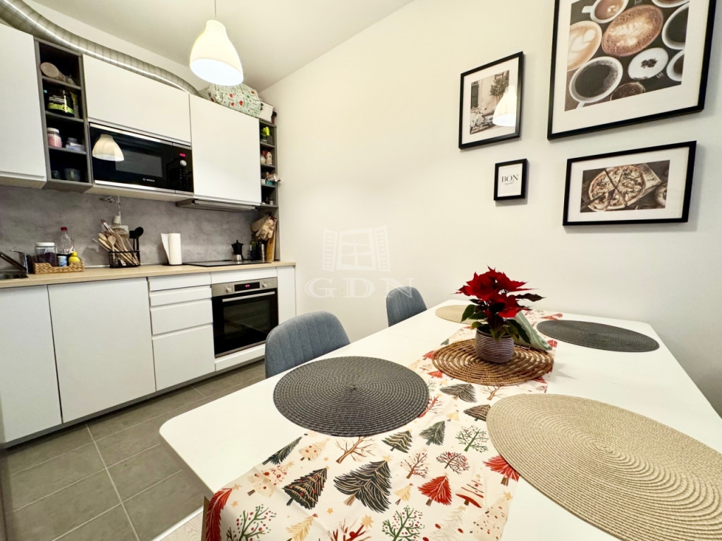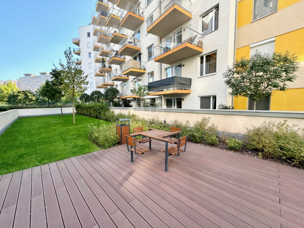 XIII. kerületben, a dinamikusan fejlődő, fiatalos, méltán népszerű, Angyalföldön, kiváló közlekedés és ellátottság mellett, a karnyújtásnyira a Göncz Árpád városközponttól és a Duna parttól, 2021-ben, magas műszaki színvonalon épült, exkluzív megjelenésű, saját parkkal, játszótérrel, közösségi térrel rendelkező újszerű állapotú, exkluzív megjelenésű dupla liftes társasházban, KIVÁLÓ ADOTTSÁGOKKAL BÍRÓ, 4. emeleti, 43 nm-es, 7 nm-es terasszal rendelkező, 2 szobás, amerikai konyhás, napos, világos fekvésű, csendes belső kertre néző, alacsony fenntartású, házközponti fűtésű, egyedi mérésű, újszerű állapotú, klimatizált, elektromos redőnyökkel szerelt, okos funkcióval ellátott, rugalmasan birtokba vehető, lakás, beépített, gépesített konyhával, igény esetén teremgarázs bérlési lehetőséggel, kulturált lakóközösségű házban eladó!
