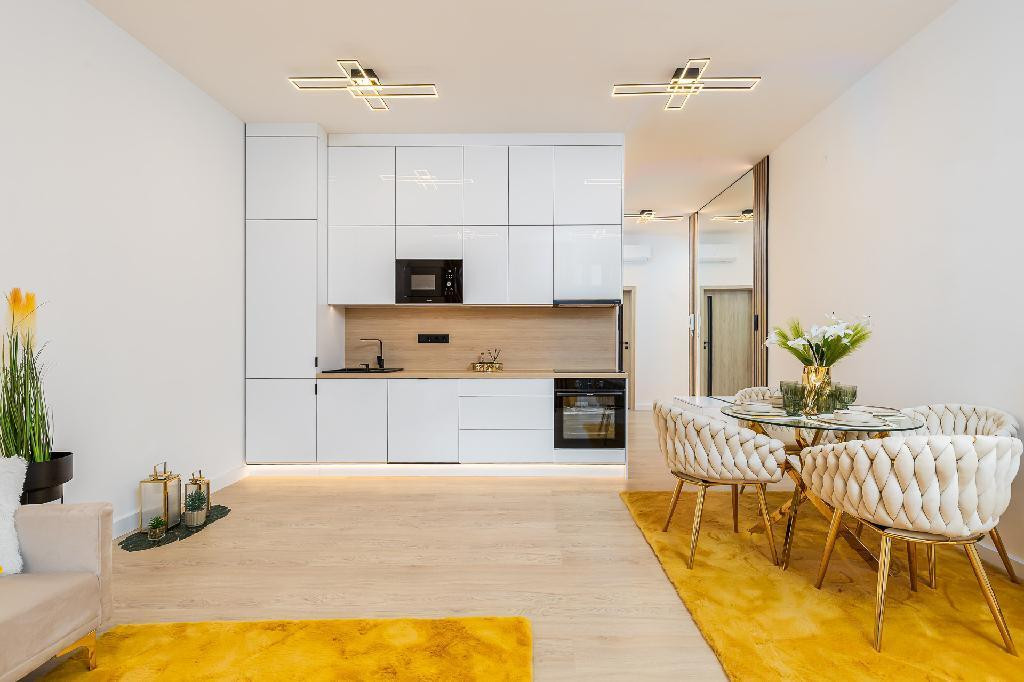 A csatolt fotók tökéletesen visszaadják a lakás exkluzív hangulatát: modern vonalvezetés, finoman fénylő felületek, designer világítás, meleg tónusok és hotelminőségű enteriőr.