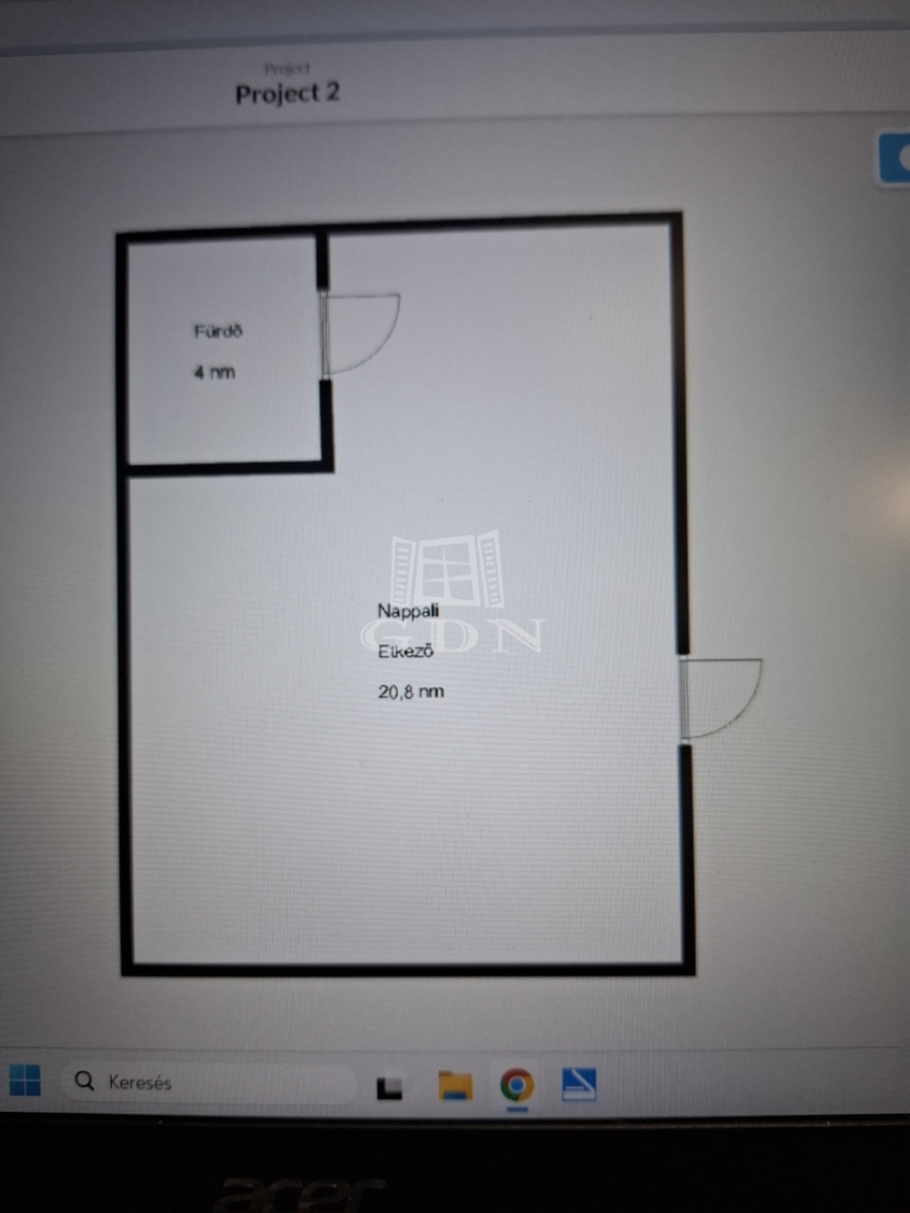 A 19 m²-es alapterület egy légterű, amelyben külön kialakításra került egy fürdőszoba WC-vel, így az ingatlan funkcionálisan jól használható, átgondolt elrendezésű.
