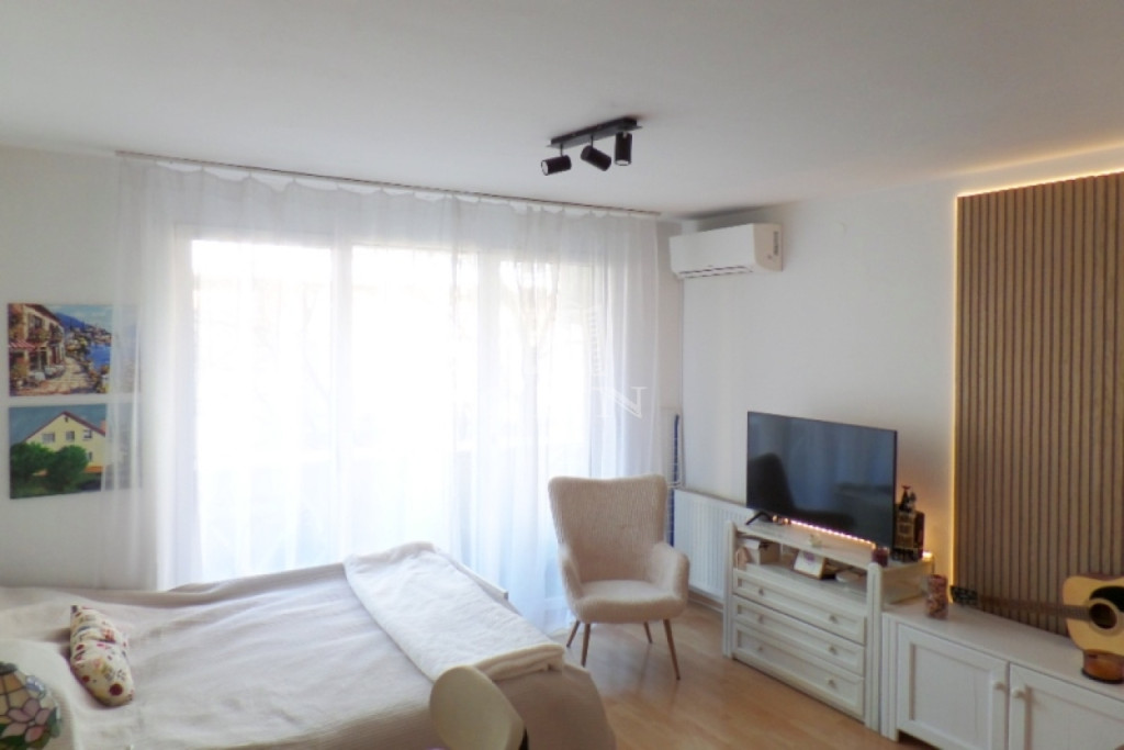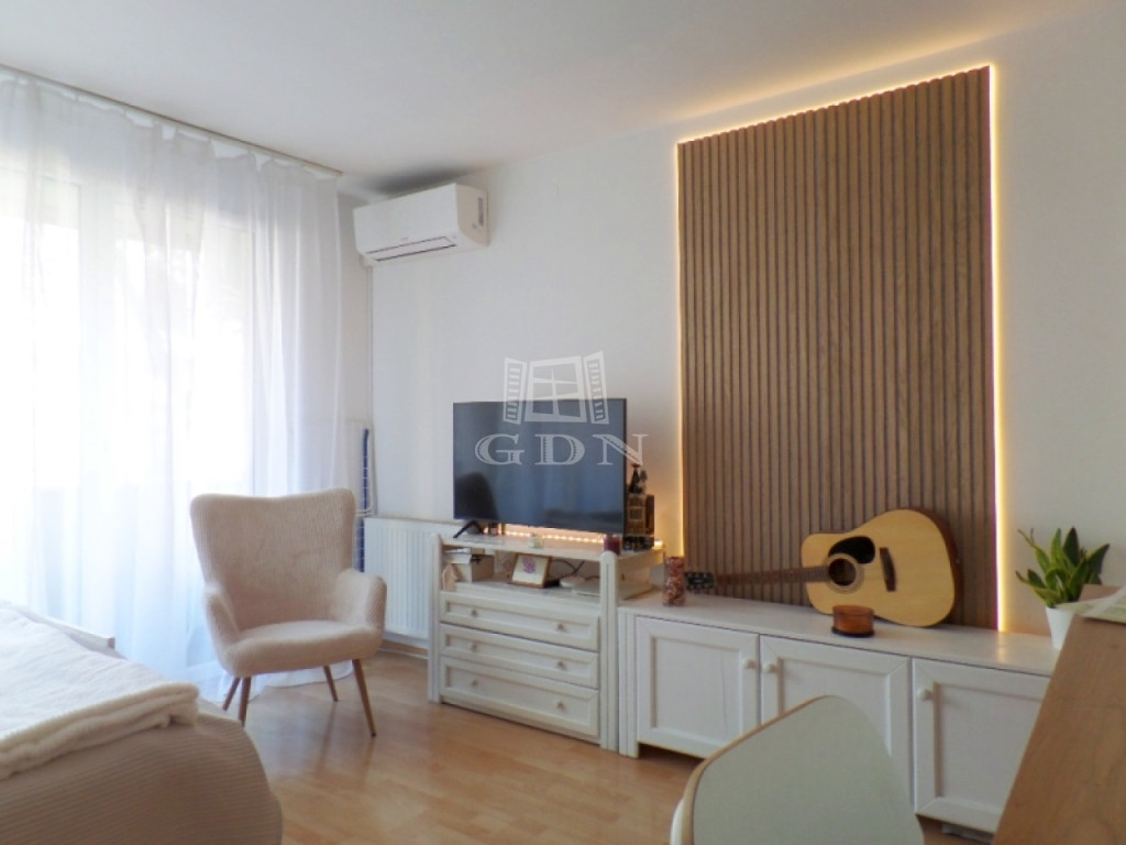 Az ingatlan egy 2005-ben épült, 8 szintes, LIFTES, igényes társasház 2. emeletén helyezkedik el. A lakás rendkívül világos. A külső nyílászáró műanyag, hőszigetelt, ELEKTROMOS redőnnyel felszerelt. A fűtés egyedi mérővel rendelkezik, radiátor hő leadóval, fürdőben törölköző szárítóval. HŰTŐ-FŰTŐ klíma is található. Az amerikai konyha gépesített, étkező pulttal rendelkezik. A lakás életterét növeli a délnyugati fekvésű 4 m2 ERKÉLY.