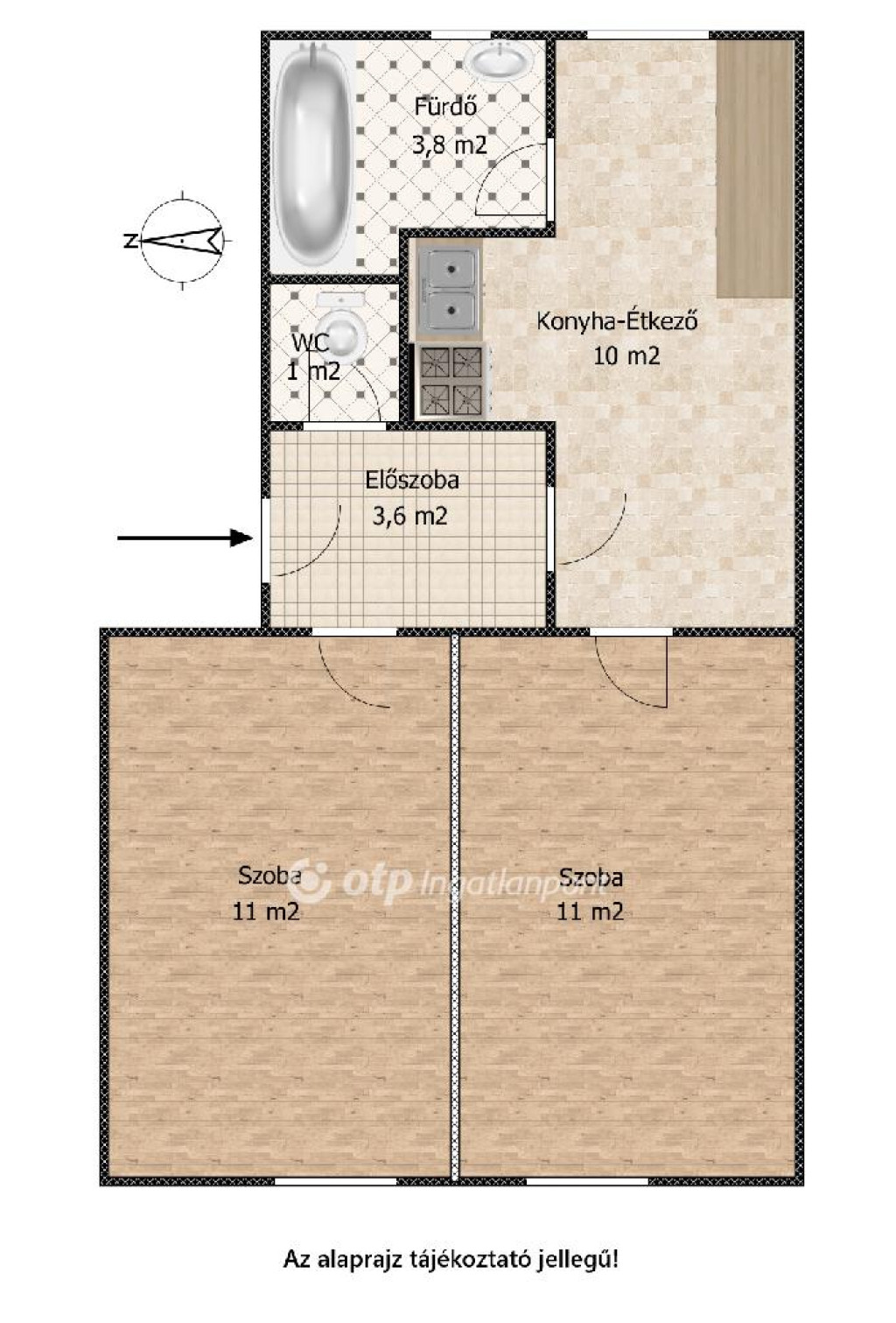 Az ingatlan tulajdoni lap szerint 1 szobás, de jelenleg gipszkartonfallal 2 szobássá van kialakítva.