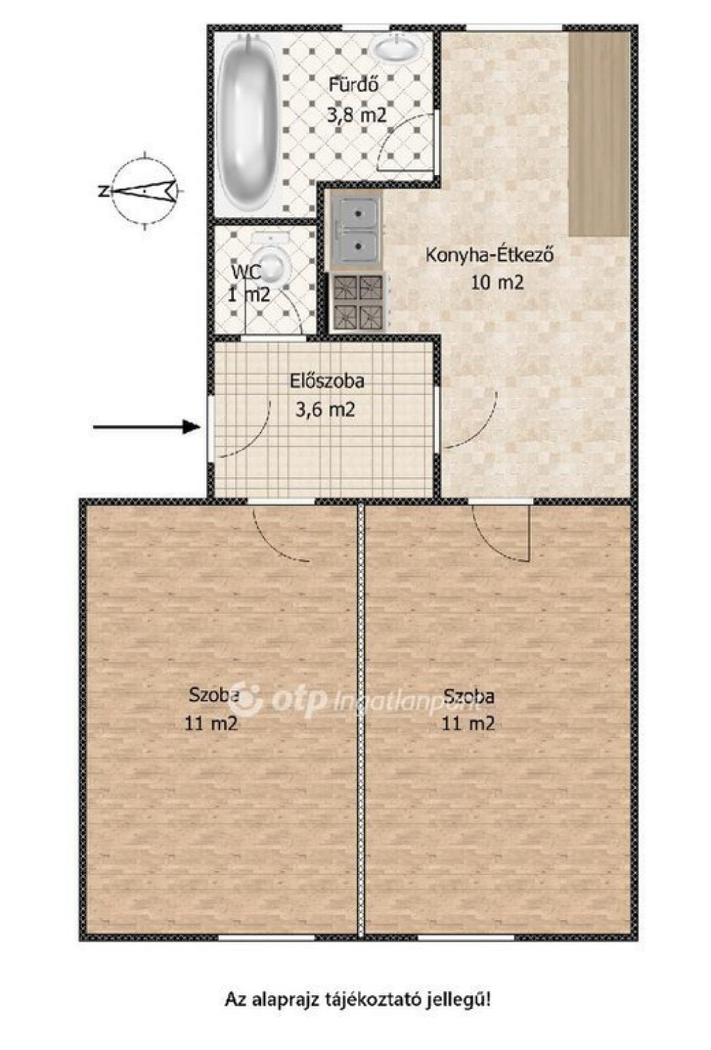 Az ingatlan tulajdoni lap szerint 1 szobás, de jelenleg gipszkartonfallal 2 szobássá van kialakítva.