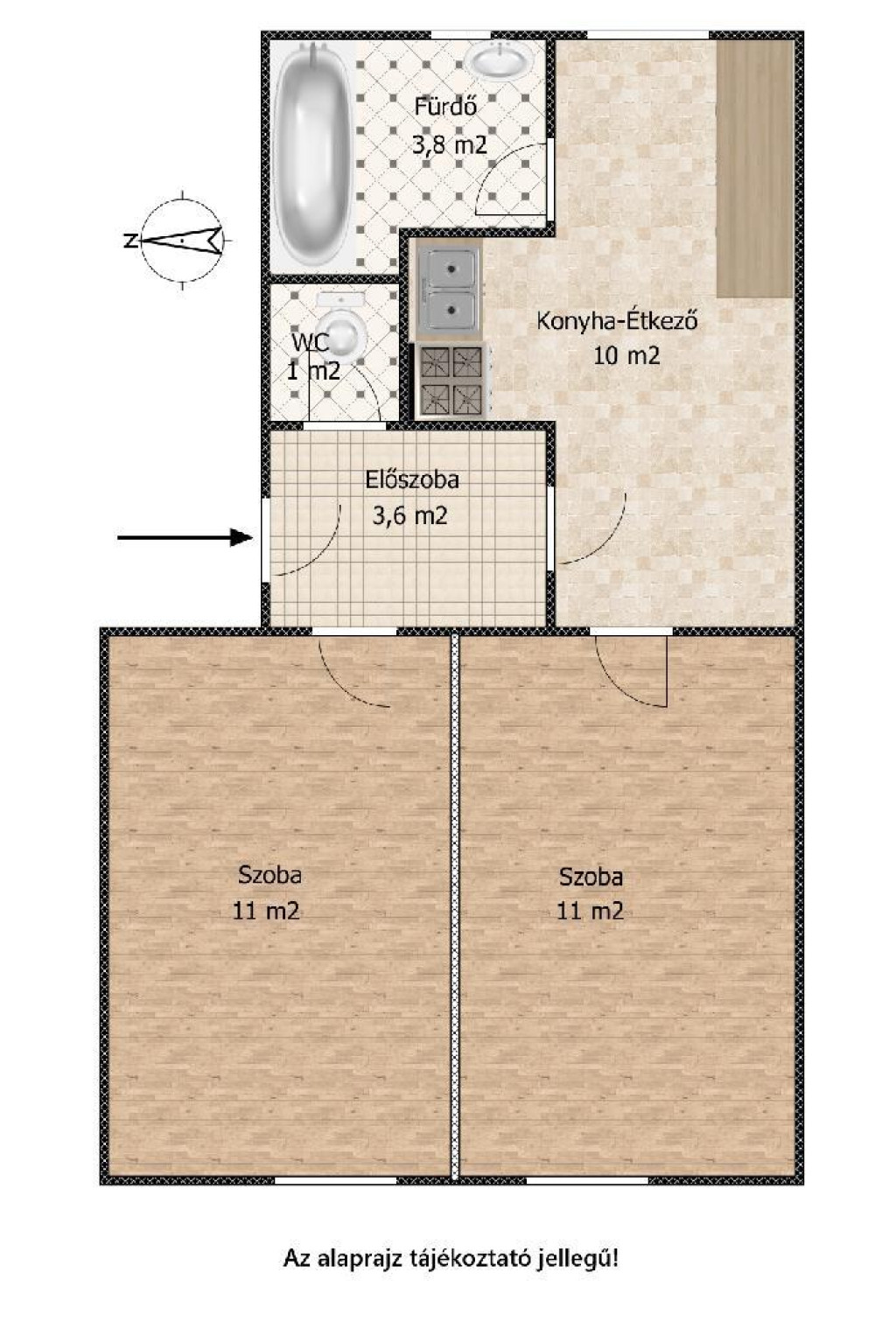 Az ingatlan tulajdoni lap szerint 1 szobás, de jelenleg gipszkarton fallal 2 szobássá van kialakítva.