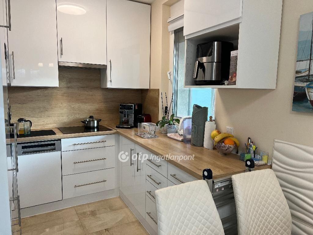 A nappalival egy légtérben kialakított, U alakú konyha modern, beépített Electrolux főzőkészülékekkel, Teka mosogatógéppel és Teka páraelszívóval felszerelt.