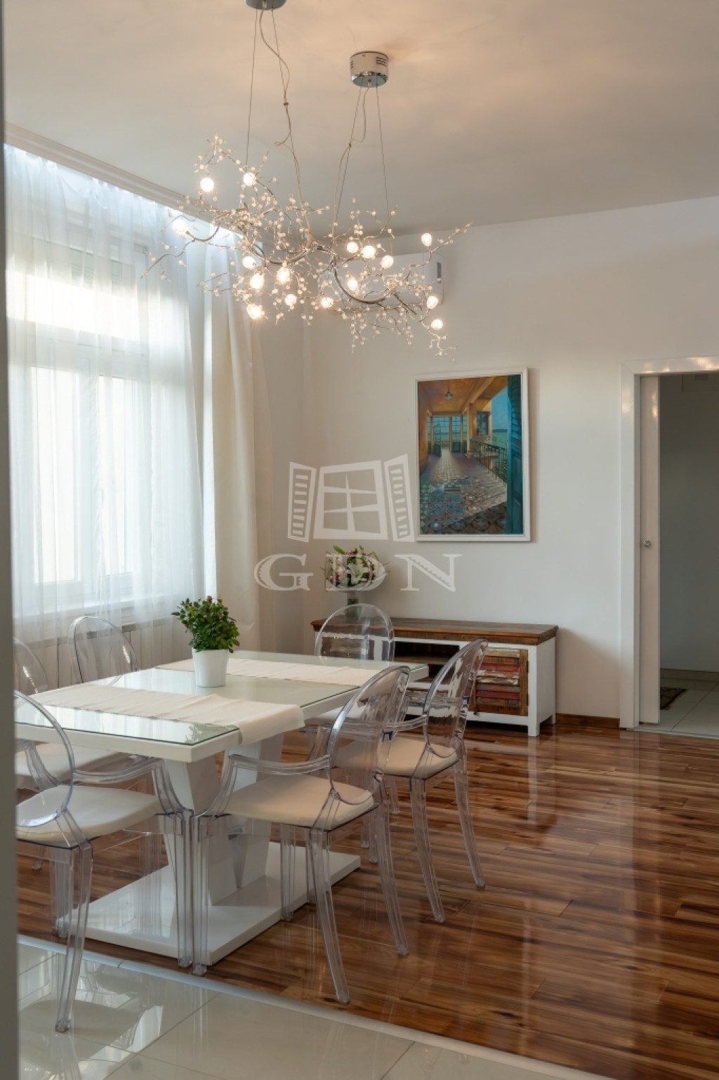 Exkluzív és biztonságos környezet: Az 5. emeleten mindössze két lakás található, a lift pedig csak kulccsal használható, így a privát szféra teljesen biztosított. A lakás távfelügyeletre kötött riasztó rendszerrel rendelkezik.