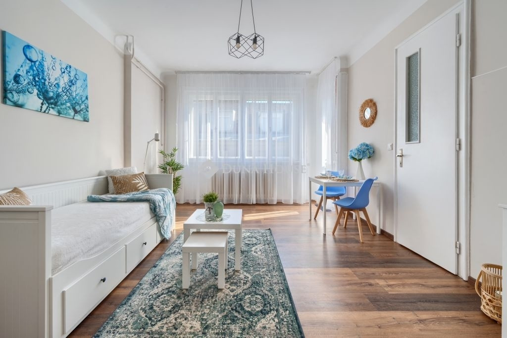 Újlipótvárosban ritka lehetőség erkélyes, felújított garzon a Jászai Mari térnél!Eladó egy 31 m²-es + 2,5 m² erkélyes, déli fekvésű, világos, felújított garzonlakás Újlipótváros egyik legjobb részén, a Pozsonyi út - Katona József utca sarkánál, liftes, patinás BAUHAUS házban, magas/legfelső emeleten, utcai kilátással és részleges dunai láthatósággal.A lakás 2022-ben felújított, csendes, jól tagolt terekkel, külön konyhával és zuhanyzós fürdővel. Igényes bútorzattal berendezett, akár teljes berendezéssel is megvásárolható, azonnal költözhető vagy kiadható.Alacsony rezsi (kb. 20.000 Ft/hó közös költséggel együtt), távfűtés egyedi méréssel, megbízható infrastruktúra.A társasház rendezett, pénzügyileg stabil, rövid távú kiadás engedélyezett!Bérbeadási potenciál: 230 ezer Ft/hó, gyorsan kiadható.Kiváló lokáció: Jászai Mari tér, 46-os villamos, Duna-part, Margitsziget, kávézók, éttermek, üzletek pár perc sétára.Tehermentes, 1/1 tulajdon, azonnal birtokba vehető.