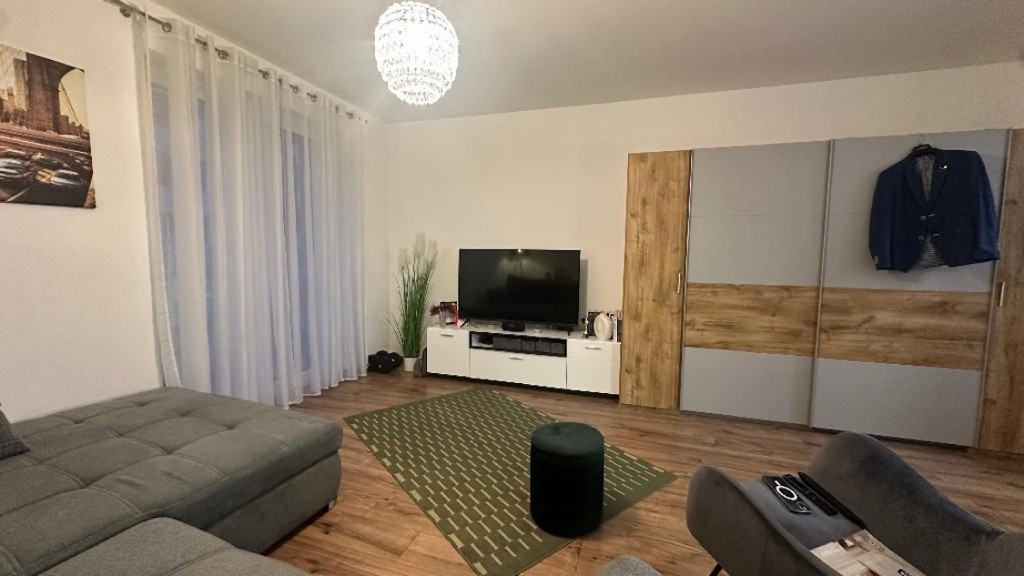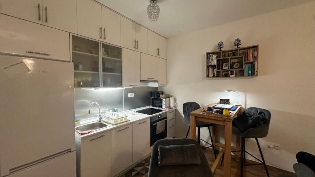 Külön fürdő-wc és az ingatlan, plafonig beépített gépesített konyhabútorral, (mosogatógéppel).