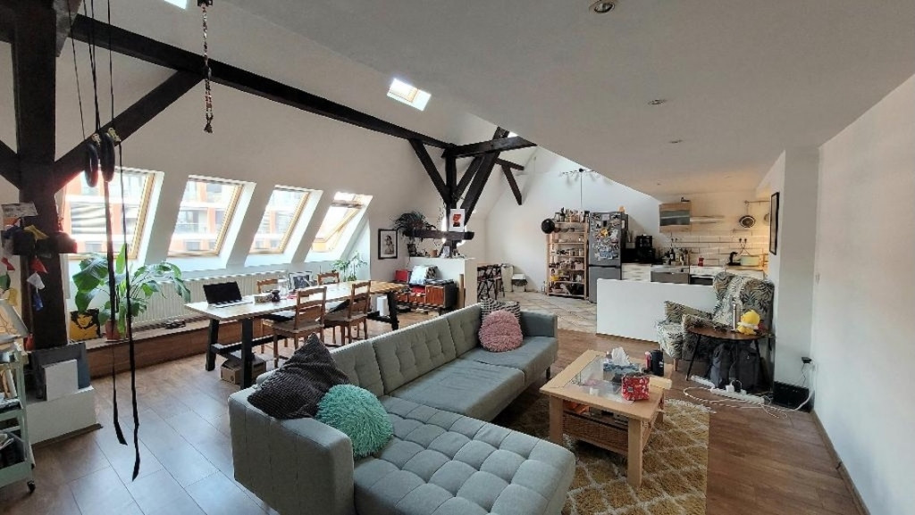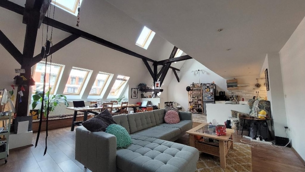 Eladó Budapest XIII. kerületének frekventált részén, közel a Lehel térhez, egy különleges hangulatú, 111 m2-es, belső kétszintes lakás.