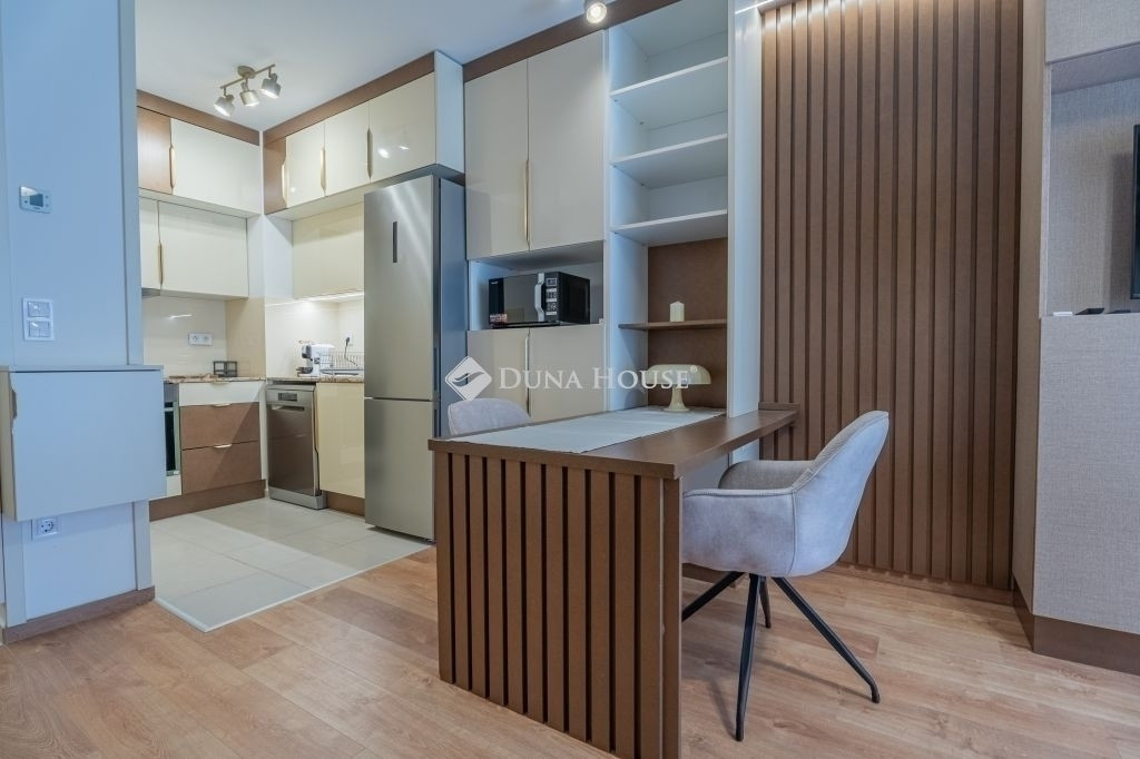 Letisztult elegancia a West Side Gardenben – stílusos, azonnal költözhető lakás a XIII. kerület szívében!A XIII. kerület legújabb lakóparkjában, a Big George által fejlesztett West Side Gardenben kínálok eladásra egy 1. emeleti, 45 m²-es, igényesen kialakított, ízléses otthont.A belső terek megkomponálását profi tervező végezte, ahol a meleg bézs árnyalatok, a minőségi burkolatok és a harmonikus anyaghasználat gondoskodnak az időtálló, elegáns hangulatról. Minden részlet a kényelmet és az esztétikát szolgálja.Főbb jellemzők:Világos, amerikai konyhás nappali, gépesített konyhával, gránit munkalappalÖsszehangolt belsőépítészeti koncepció, modern bútorzattalOkosotthon vezérlés, mennyezeti hűtés-fűtésHő- és hangszigetelt nyílászárók, elektromos redőnyök, szúnyoghálóTágas terasz, amely a csendes, parkosított belső kertre nézNagyobb méretű teremgarázs beálló és tároló a vételáron felül kötelezően megvásárolandó!A West Side Garden kiváló elhelyezkedéssel bír: a Váci út, Duna Pláza, metró, irodaházak és rekreációs lehetőségek egyaránt pár perces sétával elérhetők, miközben a zöld, belső udvar nyugodt életteret biztosít.Ideális választás azok számára, akik egy letisztult, modern otthonban képzelik el a mindennapjaikat – kompromisszumok nélkül.Megtekintésért vagy további információért keressen bizalommal, akár hétvégén is!