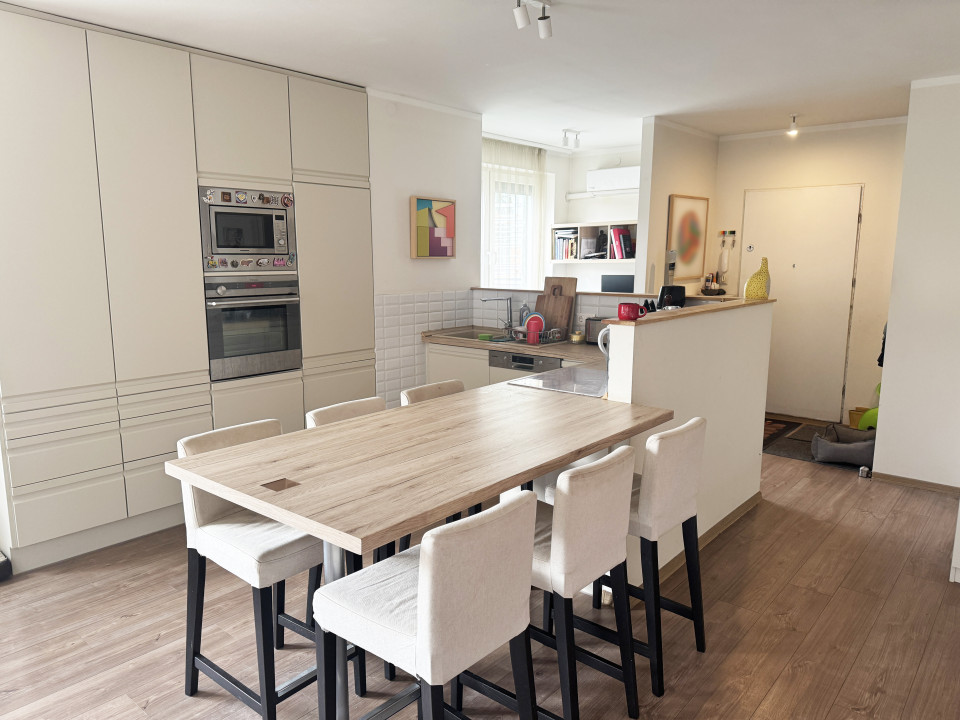 A vételár részét képezik a beépített bútorok, a háztartási gépek, német indukciós főzőlap, beépített légkeveréses sütő és mikró, beépített hűtő fagyasztóval és a mosógép is.