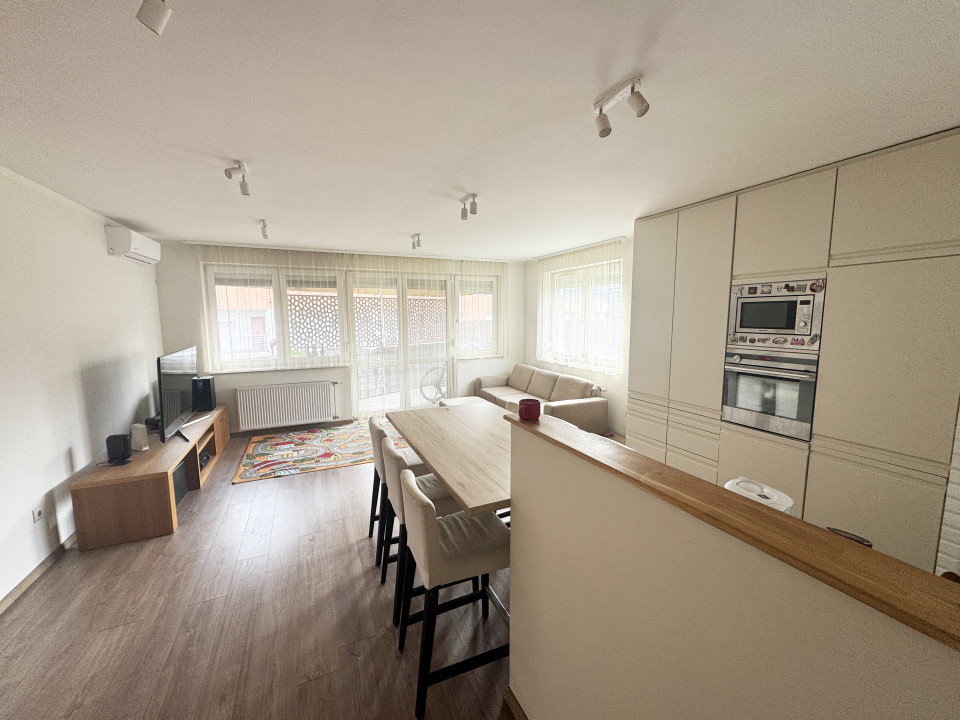 A sok ablakos, benapozott, világos nappali közvetlen terasz kapcsolattal teszi különlegessé ezt a modern alaprajzú lakást. A nagyszoba és a háló saját klímákkal felszerelt, minőségi beépített bútorok és gépek várják az új lakókat. Az ablakok szúnyoghálóval és redőnnyel felszereltek.
