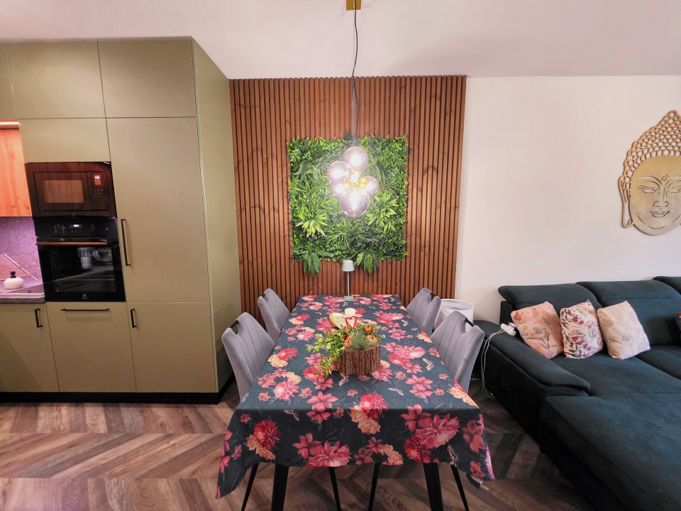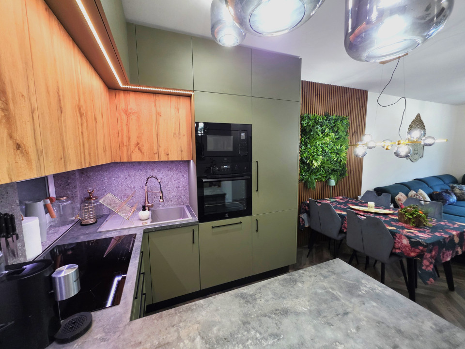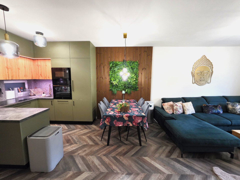 Az otthon színei melegséget, eleganciát és természethez közeli nyugalmat árasztanak. Mivel a lakás teljesen bútorozottan eladó, Önnek mindössze be kell költöznie és élveznie a tökéletes harmóniát!