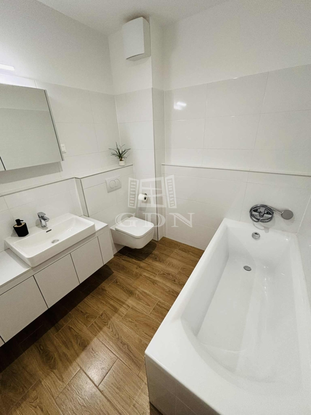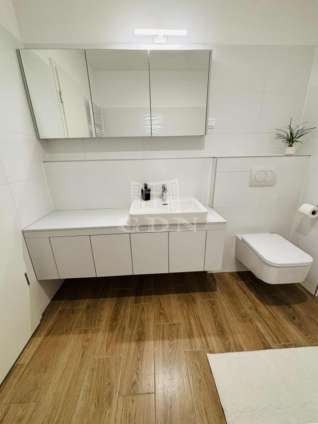 Beépített előszoba, - fürdőszoba (mosógéppel) és konyhabútorral, plusz gépek (sütő, főzőlap, mikrohullámú sütő, szagelszívó, hűtőgép és fagyasztó. Konyha sziget.