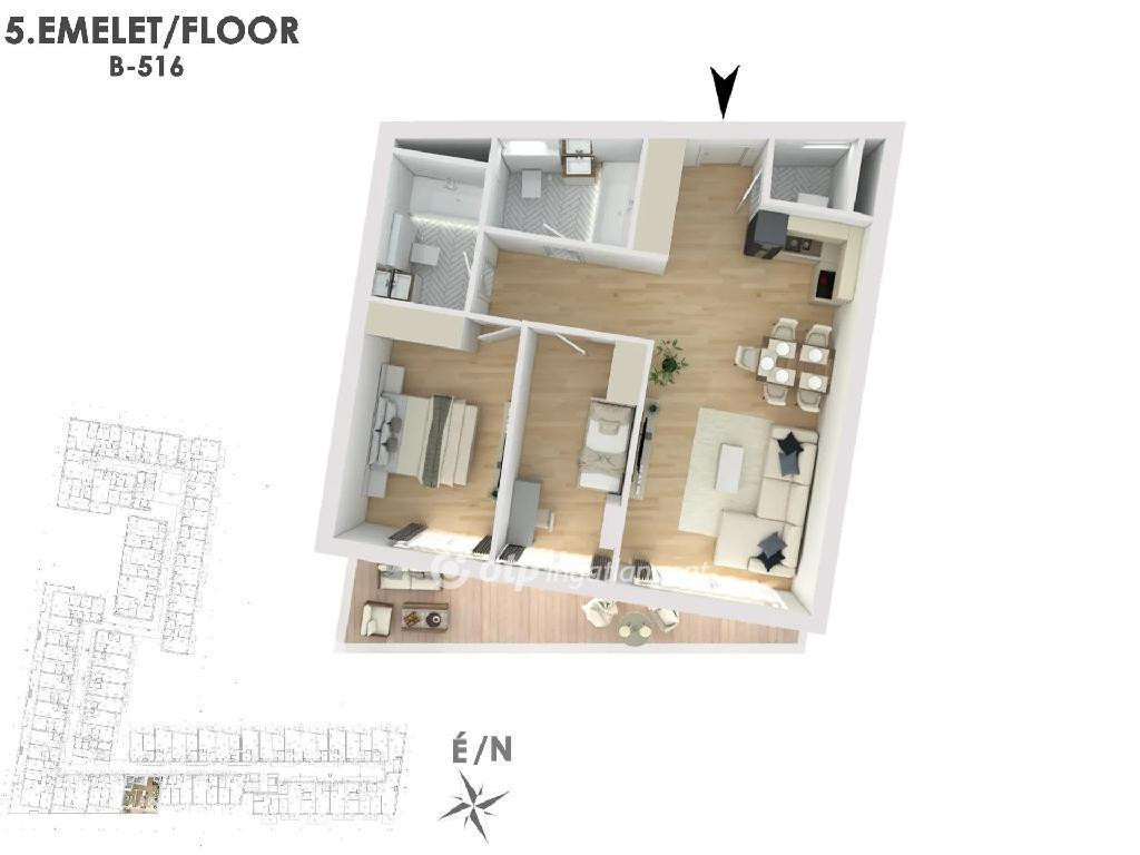 Budapest rendkívül felkapott és folyamatosan fejlődő környéken a XIII kerületben, közel a Dunához, kiemelkedő színvonalú MODERN, ELEGÁNS és ENERGIAHATÉKONY új lakópark kerül megépítésre. A 8. emeletes épület komplexum 3 parkoló szinttel, tárolókkal és kerékpároknak kijelölt helyekkel fog rendelkezni. A 377 lakásos társasházban ideális lakásmixet kínálunk mindenki számára. A lakások méretei 30m2-135m2-ig terjednek. A legtöbb lakáshoz nagy méretű erkély és terasz tartozik. A földszinti parkoló fölött tetőkert létesül, melynek egy része közösségi kert, továbbá számos kényelmi szolgáltatás is lesz biztosítva: zöld udvar, játszótér, fitnesz terem, szauna állnak majd rendelkezésre, ráadásul mindez a Duna-part közelében. A fűtésről és hűtésről gondoskodó levegő/víz hőszivattyús rendszer AA+ besorolással rendelkezik. A lakásokban mennyezetfűtés- hűtés készül, illetve a fürdőszobákban opcionális padlófűtés létesíthető. A nyári melegre gondolva a hűtés olyan technikával lesz megoldva, hogy a levegőt ne szárítsa. A lakóépület anyagösszetétele is kiemelkedő színvonalat tükröz. Az építés során kizárólag minőségi anyagok kerülnek felhasználásra, hogy tartós és időtálló otthonokat teremtsenek. A 8 emeletes épület kiválóan illeszkedik a városképbe, valamint ideális közlekedési infrastruktúrával rendelkezik. Az elhelyezkedése kiváló, hiszen a Váci úti irodafolyosó szomszédságában található, így könnyedén elérhető a város központja és a fontosabb üzleti negyedek.
