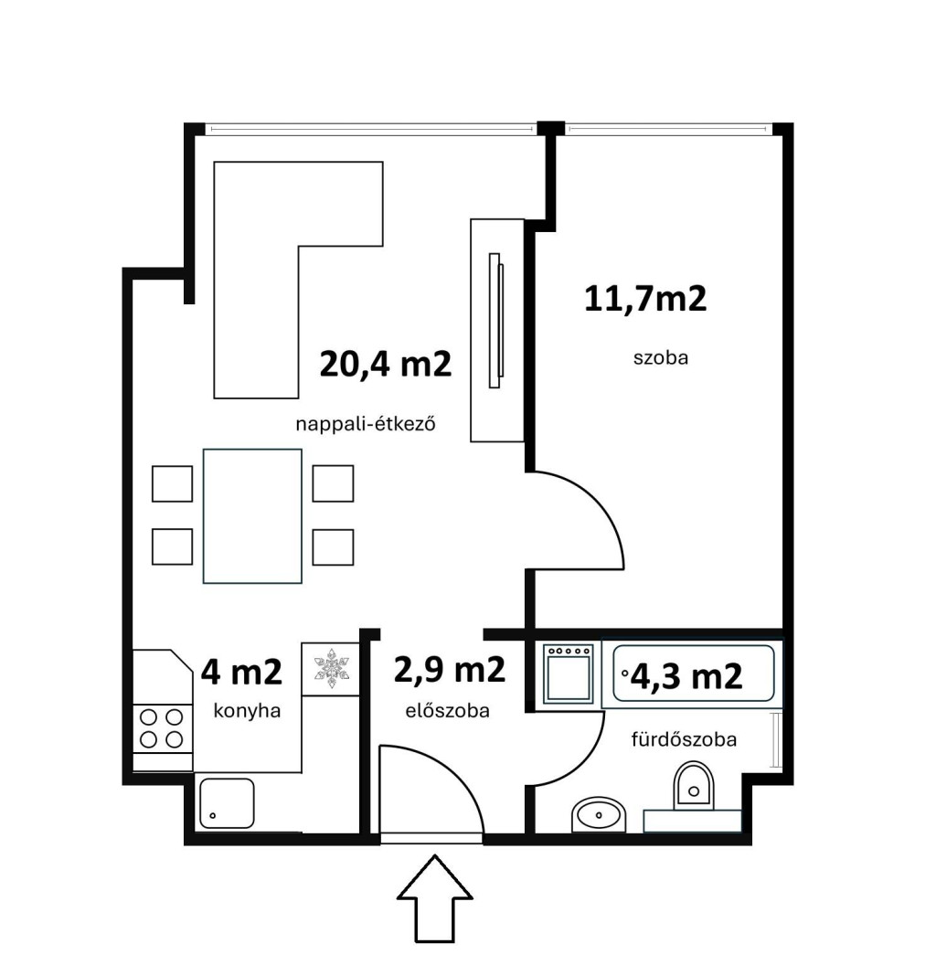 - Szoba: 11,7 m2