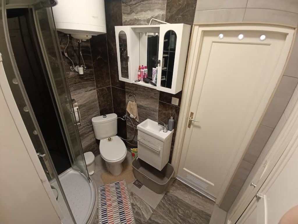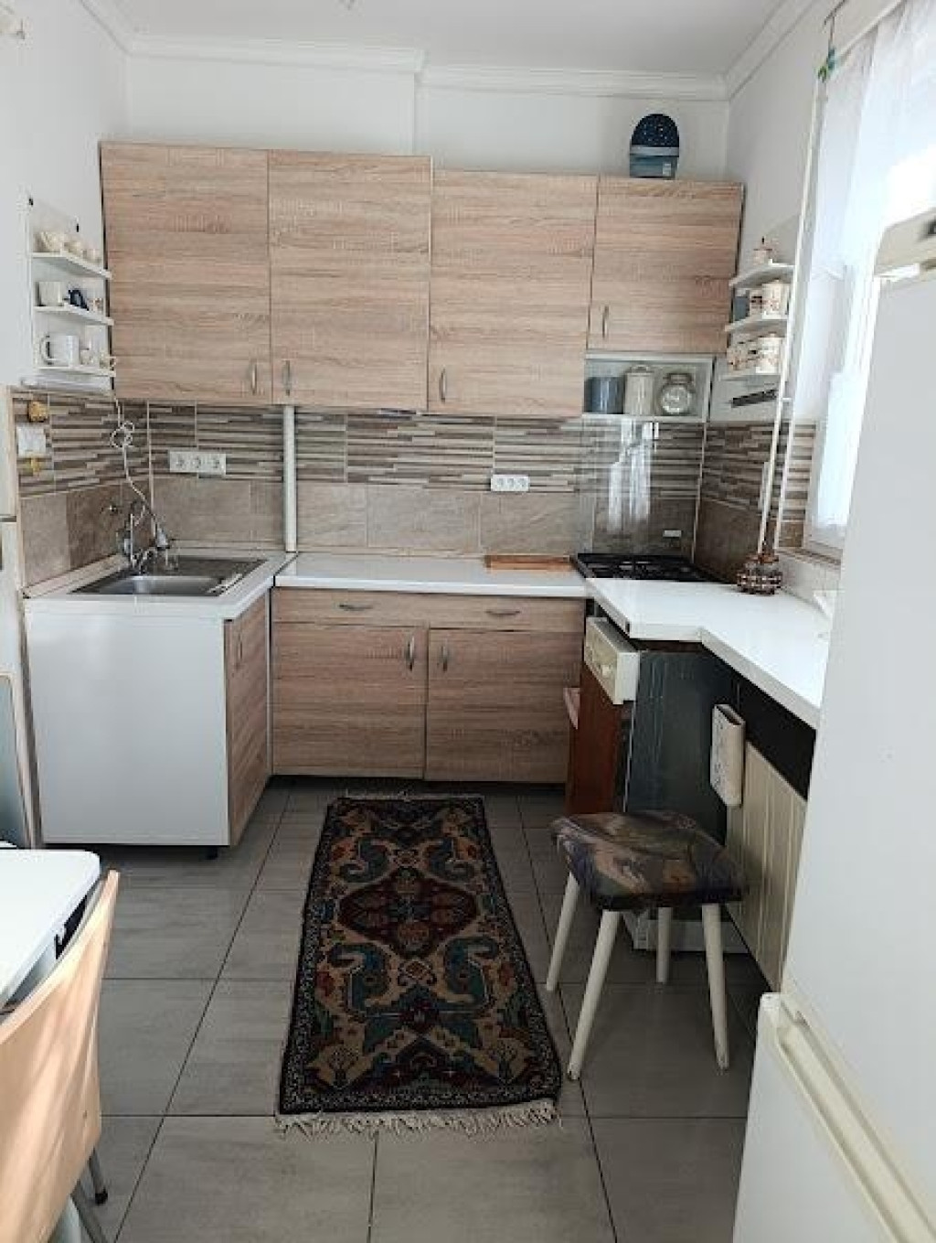 Az előtérből jobb kéz felől található egy 8 m2-es konyha/étkező. Innen nyílik a 2022-ben teljes felújításon átesett 5 m2-es fürdő/wc, ahonnan nyílik a kisebbik 12 m2-es szoba.