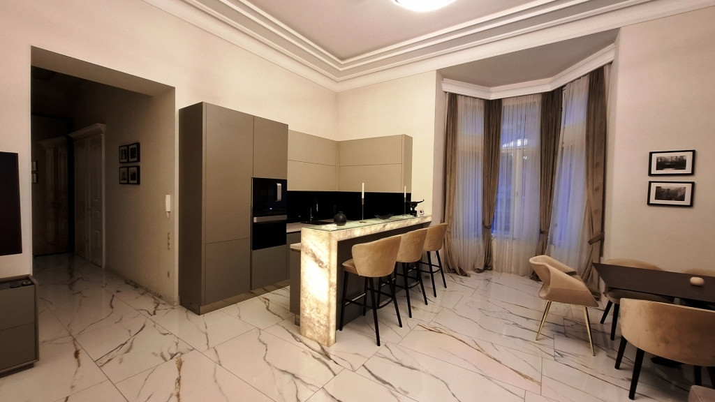 Eladó egy luxus szinvonalon felújított lakás a Szent István körúton közvetlenül a Vígszínház színház mellett,egy liftes kiváló állapotú polgári épület második emeletén.
