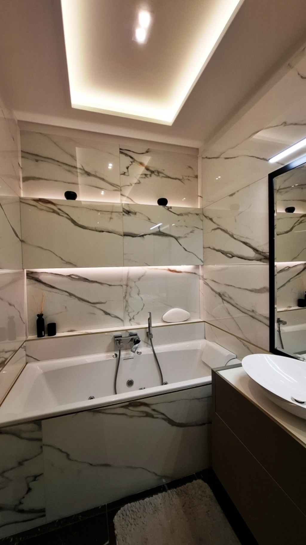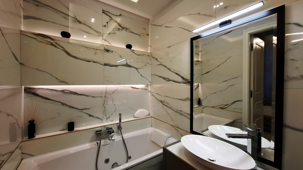 A minőséget Marazzi burkolatok, Grohe és Villeroy&Boch szaniterek,Gorenje Ora Ito gépek valamint Kare, BoConcept és Einholz designer márkák fémjelzik.