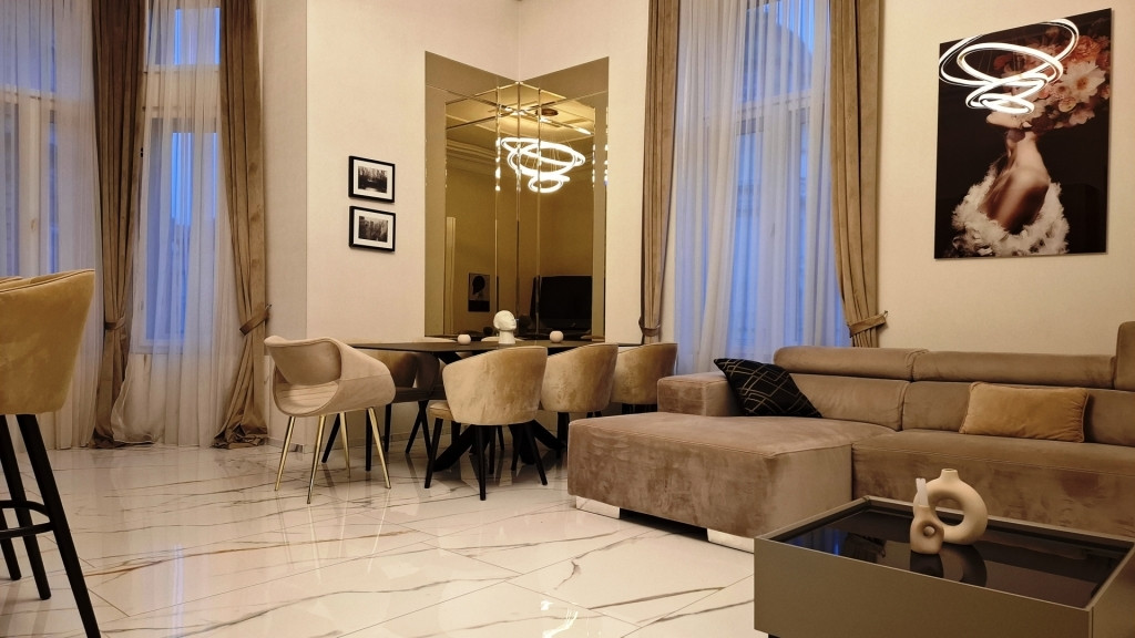 A lakás nagyvonalú terekkel, jól átgondol talaprajzzal, egymástól jól határolt hálószobákkal mind azt a kényelmet és luxust nyújtja, ami igazi nagypolgári minőségi életérzést biztosít.