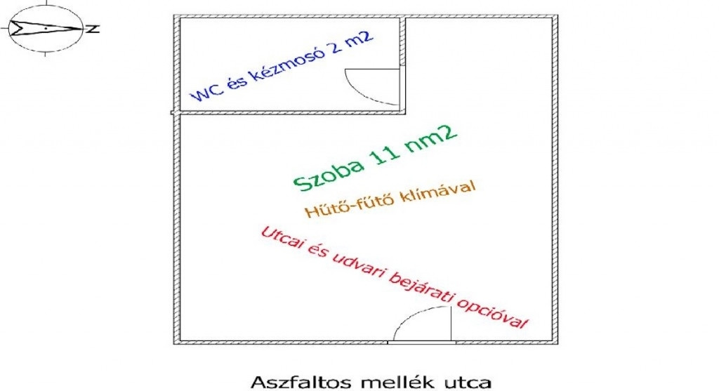 * Utcai bejárattal rendelkezik most, de van egy bejárati ajtó opciója a társasház udvarára is.