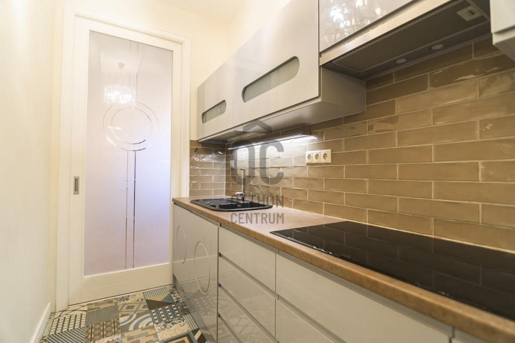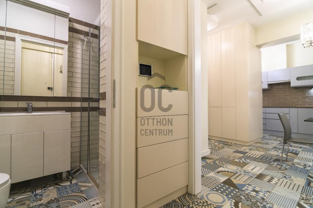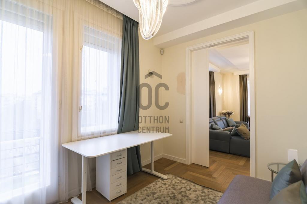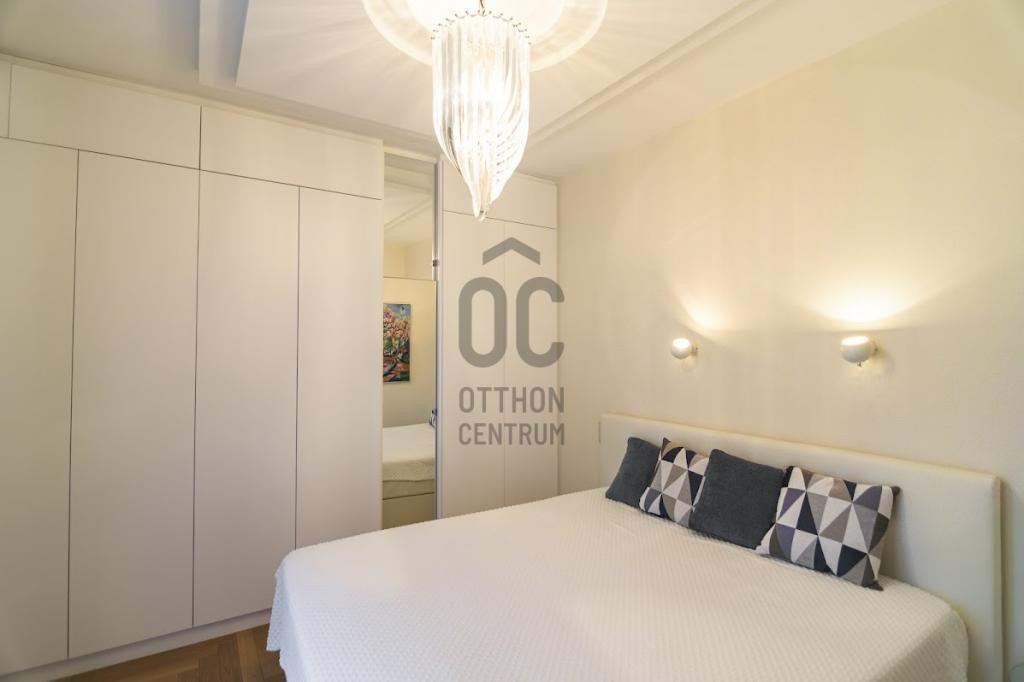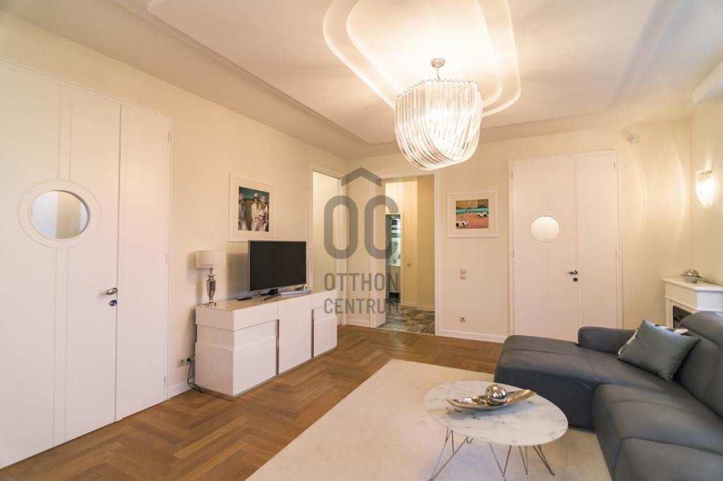 A 4. emeleti saroklakás pár éve teljeskörű műszaki és esztétikai felújításon esett át. A belsőépítész tervei szerint egyedi ajtók, bútorok és burkolatok kerültek beépítésre. A lakás különlegessége a fantasztikus hangulatot teremtő csillárok, amelyek exkluzív megjelenésükkel plusz eleganciát visznek a térbe.