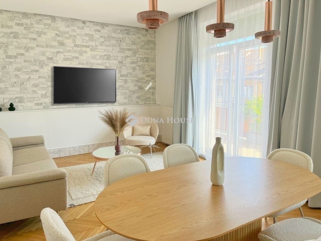 Újlipótvárosban, a Raoul Wallenberg utcában eladó egy 2024-ben teljeskörűen felújított, hatodik emeleti, 67 m²-es lakás 24 m²-es tetőterasszal a Phönix-házban.A lakás belsőépítész tervei alapján került felújításra és átalakításra. A nappali és a konyha-étkező egy tágas légtérben található, dupla erkélyajtóval a teraszra. A hálószobából szintén van kijárat a teraszra. Külön vendég WC helyiség került kialakításra.Az ingatlan főbb jellemzői: 24 m²-es, dél-keleti fekvésű tetőterasz panorámával; légkondicionálás a nappaliban és a hálószobában; egyedi beépített bútorok; BOSCH konyhai gépek (sütő, főzőlap, beépített mikró, mosogatógép, hűtő fagyasztóval); eredeti fa parketta; magas minőségű burkolatok; felújított és szigetelt tetőterasz; redőnyök; biztonsági bejárati ajtó; padlófűtés a hidegburkolatos helyiségekben.A társasház jó anyagi körülmények között van, jelenleg is folyamatban van a teljes elektromos hálózat felújítása. A lépcsőház és a lift korábban felújításra került.Az ár a teljes berendezést, bútorzatot és a gépeket tartalmazza.