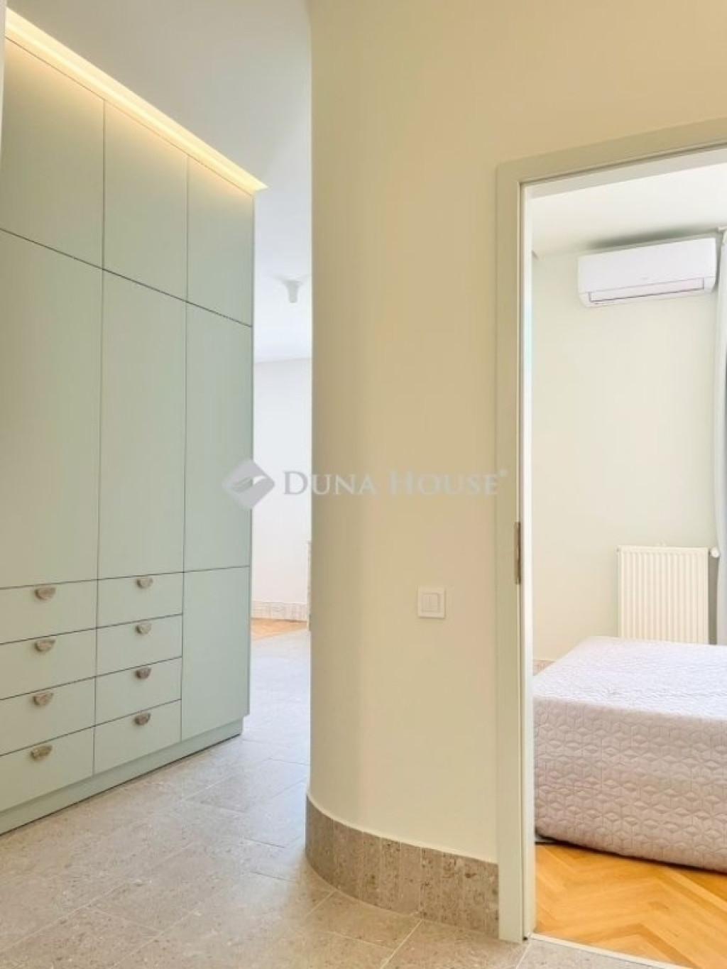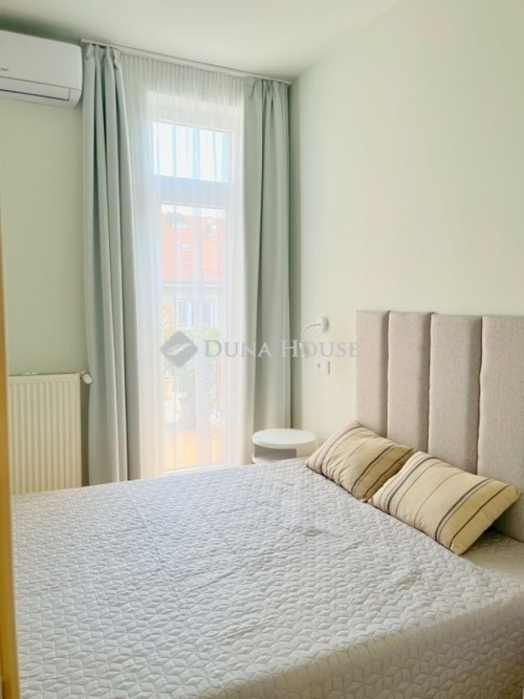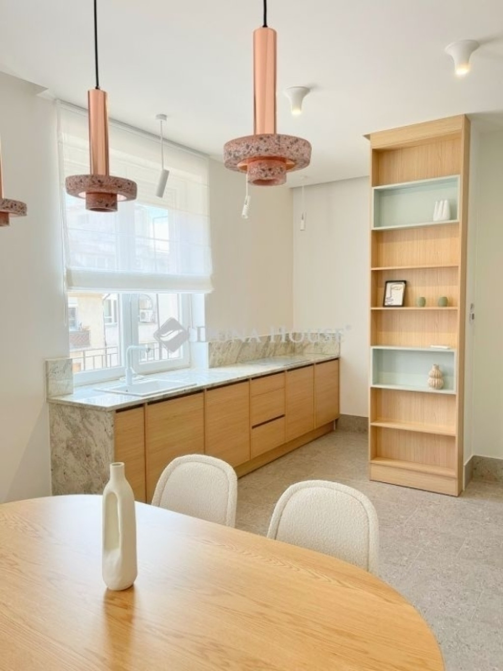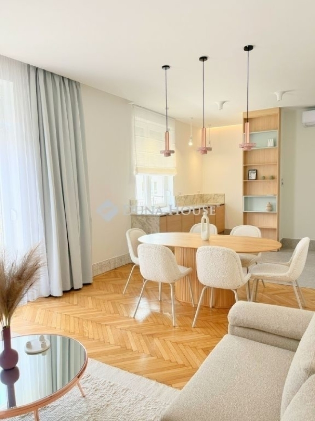 Újlipótvárosban, a Raoul Wallenberg utcában eladó egy 2024-ben teljeskörűen felújított, hatodik emeleti, 67 m²-es lakás 24 m²-es tetőterasszal a Phönix-házban.A lakás belsőépítész tervei alapján került felújításra és átalakításra. A nappali és a konyha-étkező egy tágas légtérben található, dupla erkélyajtóval a teraszra. A hálószobából szintén van kijárat a teraszra. Külön vendég WC helyiség került kialakításra.Az ingatlan főbb jellemzői: 24 m²-es, dél-keleti fekvésű tetőterasz panorámával; légkondicionálás a nappaliban és a hálószobában; egyedi beépített bútorok; BOSCH konyhai gépek (sütő, főzőlap, beépített mikró, mosogatógép, hűtő fagyasztóval); eredeti fa parketta; magas minőségű burkolatok; felújított és szigetelt tetőterasz; redőnyök; biztonsági bejárati ajtó; padlófűtés a hidegburkolatos helyiségekben.A társasház jó anyagi körülmények között van, jelenleg is folyamatban van a teljes elektromos hálózat felújítása. A lépcsőház és a lift korábban felújításra került.Az ár a teljes berendezést, bútorzatot és a gépeket tartalmazza.