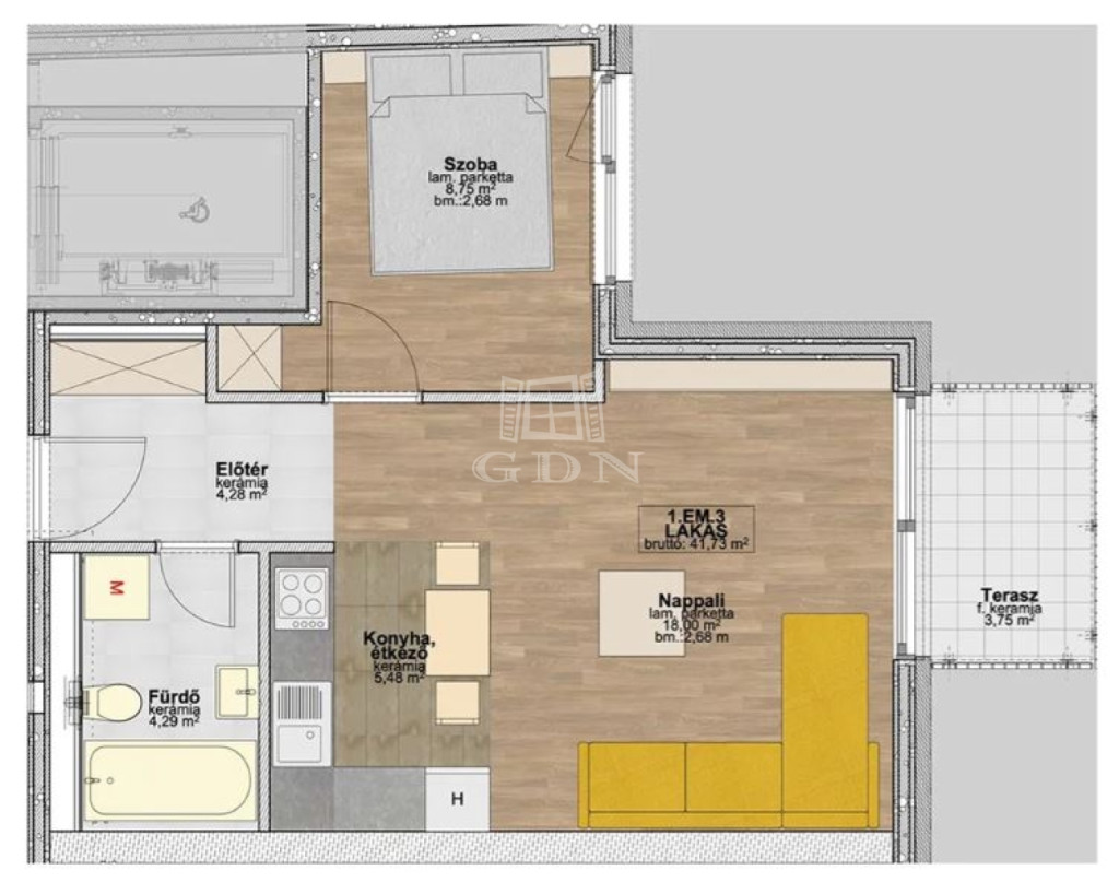 1. emelet – 40 m2 - 2 szoba – 4 m2 erkély – ELÉRHETŐ