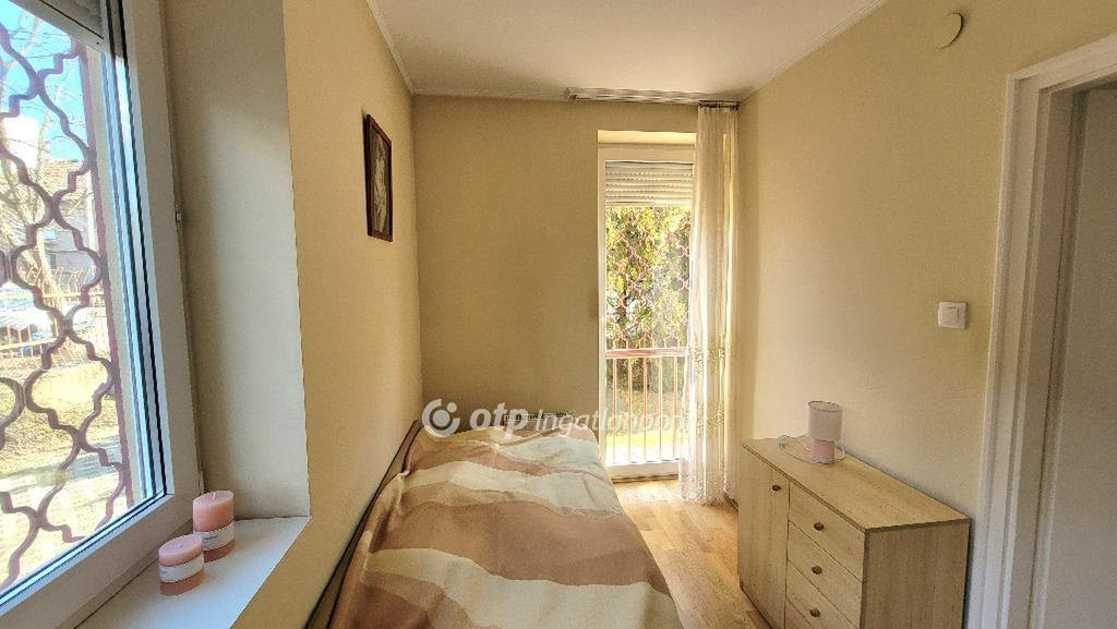 Az ingatlan egy 2000-ben épült, 11 lakásos, rendezett társasház földszintjén található. A jó állapotú, szépen karbantartott lakás kiváló elosztású: a nappali mellett két félszoba, étkező, konyha, fürdőszoba és külön WC került kialakításra. Bár földszinti az ingatlan, a számos ablaknak és franciaerkélyes ajtóknak köszönhetően igen világos és napfényes. A fűtésről és melegvízellátásról gázkazán gondoskodik.