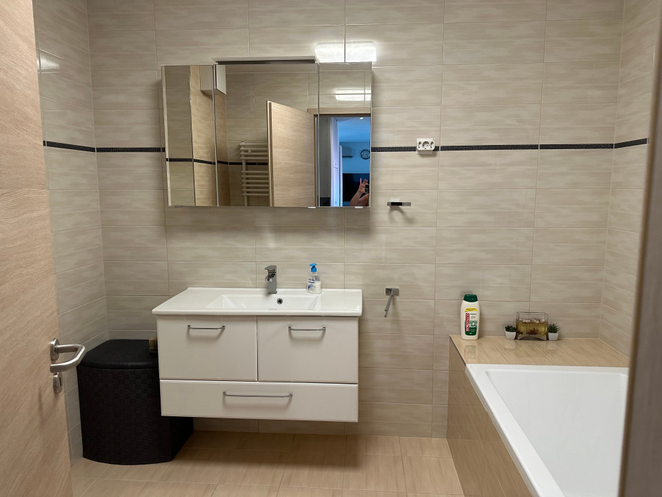 • 2 teljes értékű fürdőszoba – egyik zuhanyzóval, a másik káddal és mindkettő saját WC-vel felszerelt