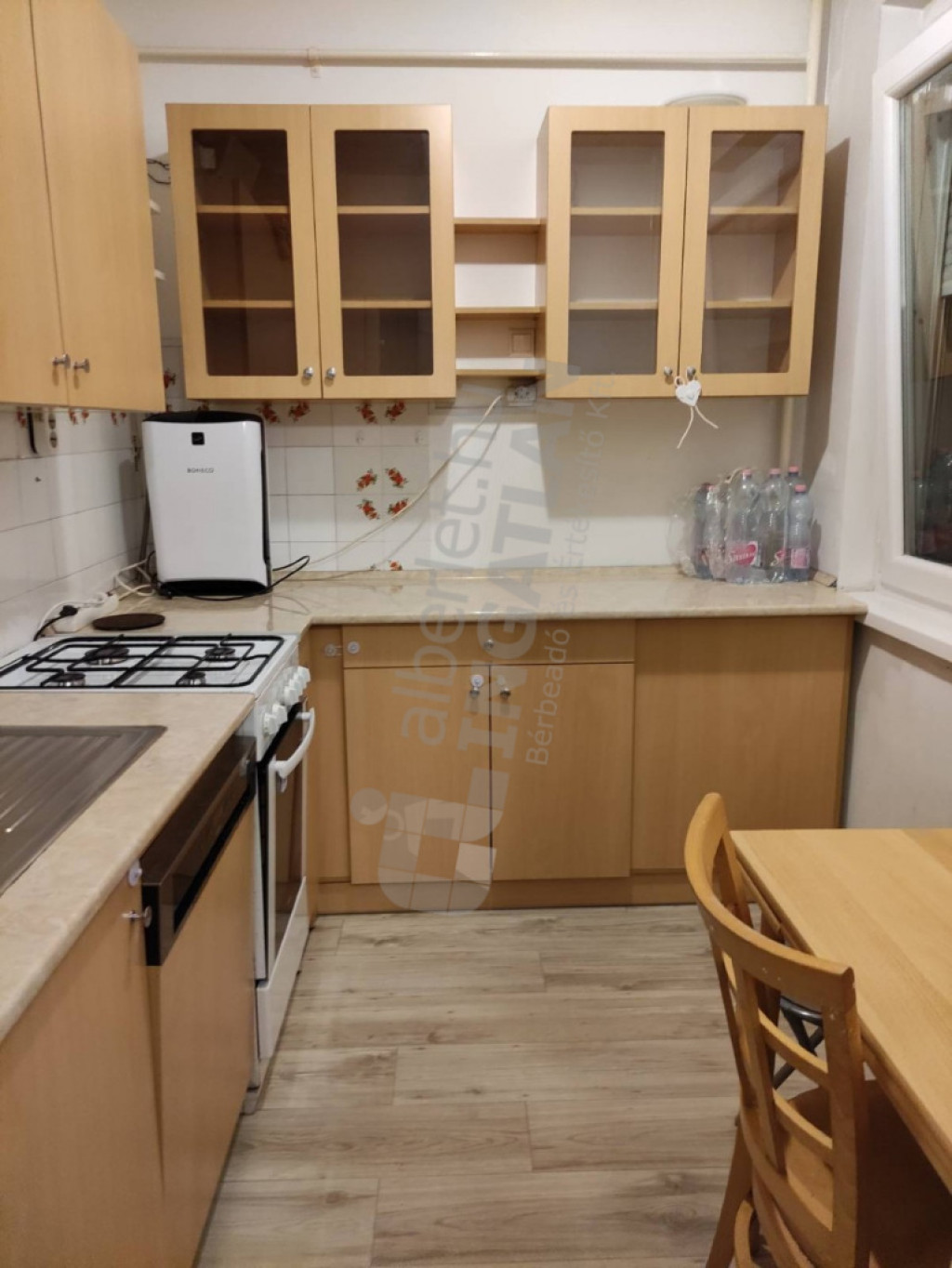 A lakás részben bútorozott, gardróbszekrények, konyhaszekrények vannak, illetve gépesített (mosogatógép, gáztűzhely, sütő, mikrohullámú sütő). A szobai padlóburkolatok és a fürdőkád nemrég került felújításra.