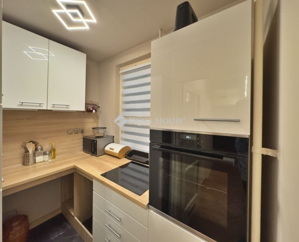 A konyha teljesen megújult, modern dizájnnal és magas kategóriás, beépített gépekkel felszerelve várja új tulajdonosát. A külön fürdő és WC mellett egy tároló is helyet kapott a lakáson belül, a 4 m²-es erkélyről pedig nyugati irányban tárul elénk a kilátás.