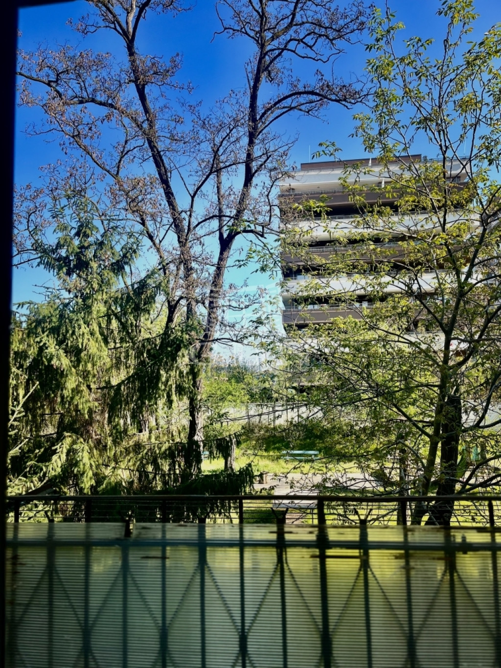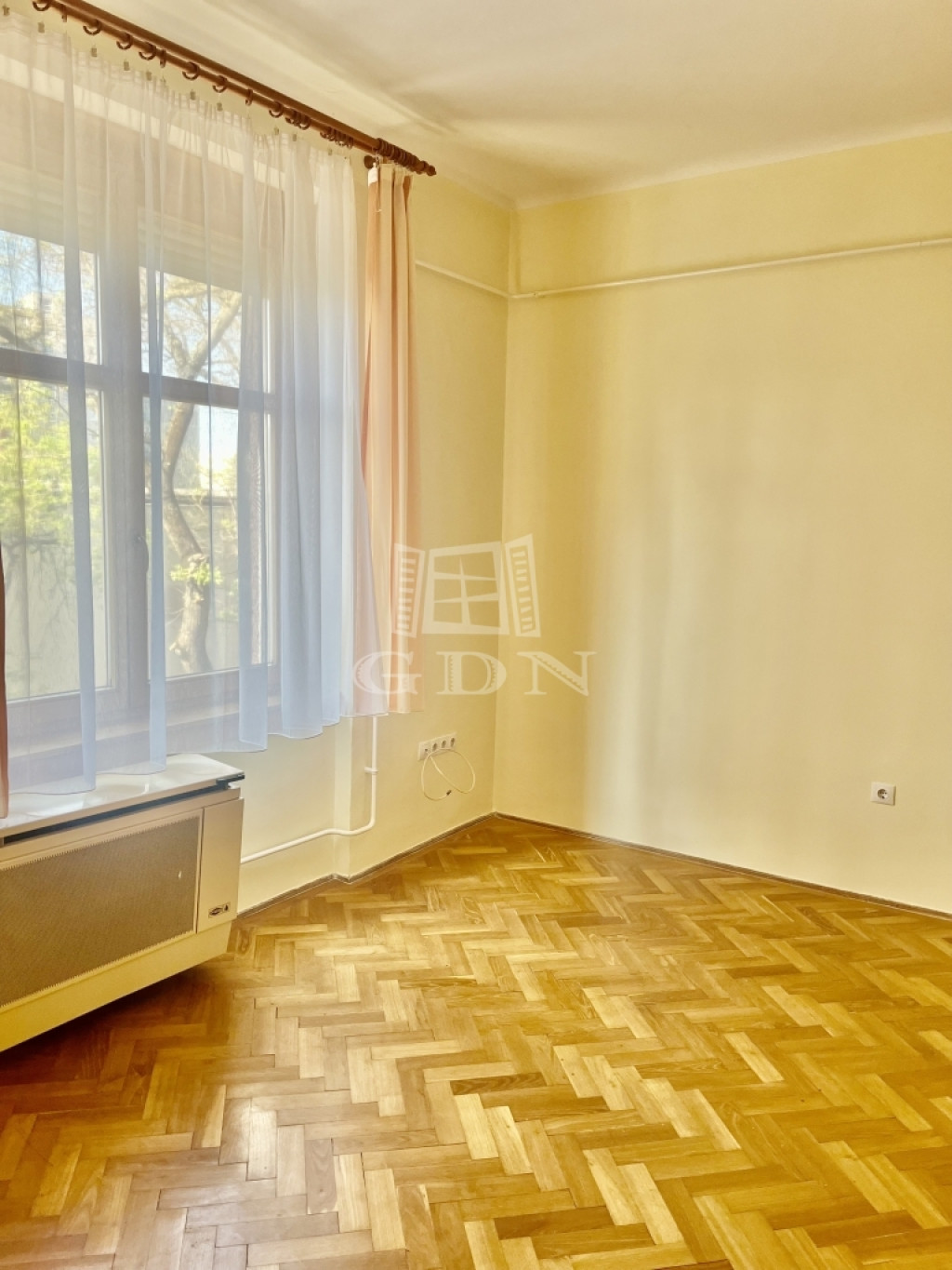 • a nagyobb szoba délnyugati fekvésű, napfényes, fákkal szegélyezett utcára néz