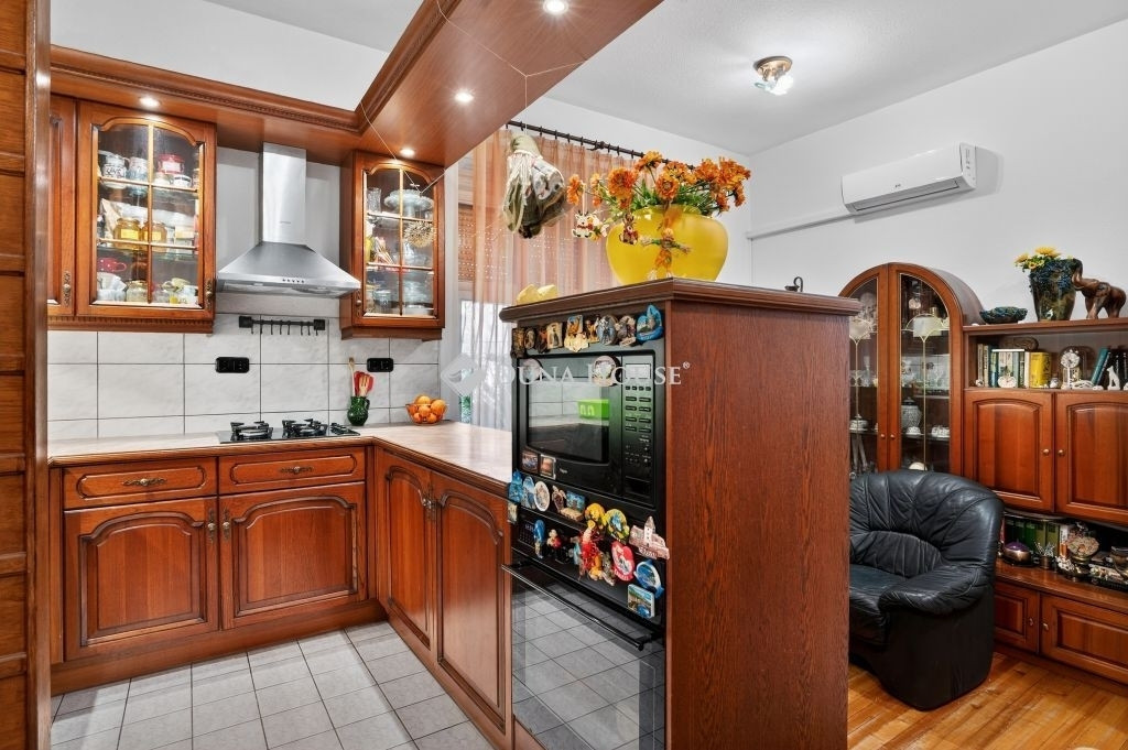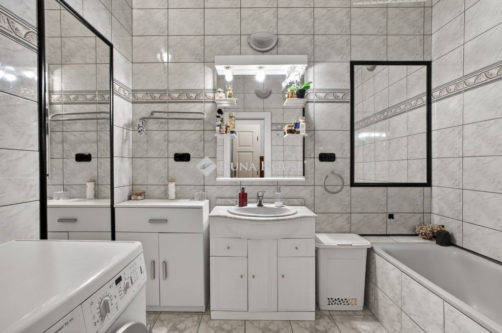 A fűtést és a melegvíz-ellátást gázkazán biztosítja, radiátoros és padlófűtéses hőleadással. A lakásban hűtő-fűtő klíma is található. A vételár részét képezi a gépesített konyhabútor, valamint a beépített szekrények és egyéb fix bútorok, így az ingatlan külön ráfordítás nélkül költözhető.