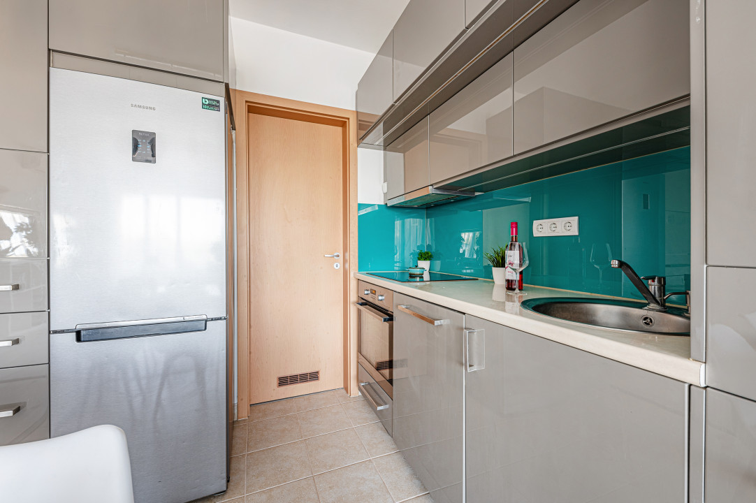 A gépészett konyha, a külön kamra (speiz) és a világos terek mind a praktikusságot és otthonosságot szolgálják.