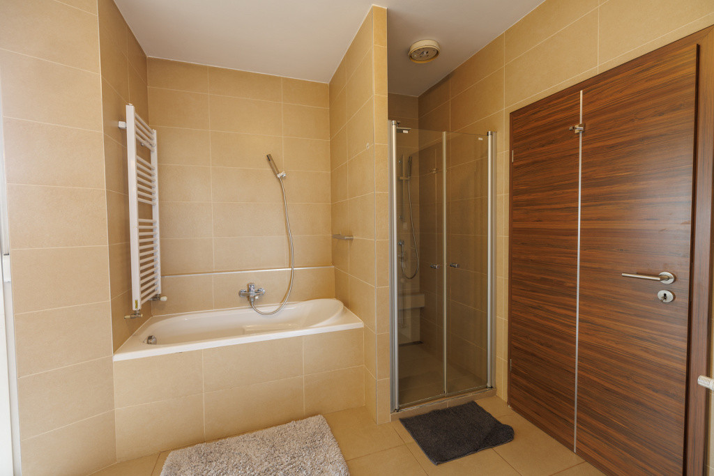 A nappali, a hálószoba és a szokatlan méretű,hatalmas fürdőszoba is közvetlen teraszkapcsolatos!