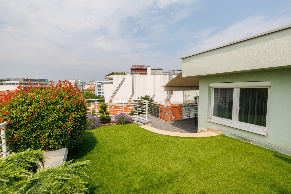 A tetőkert a zöld környezet nyugalmát és a városi élet kényelmét ötvözi – modern kialakításával igazi ritkaság Budapesten.