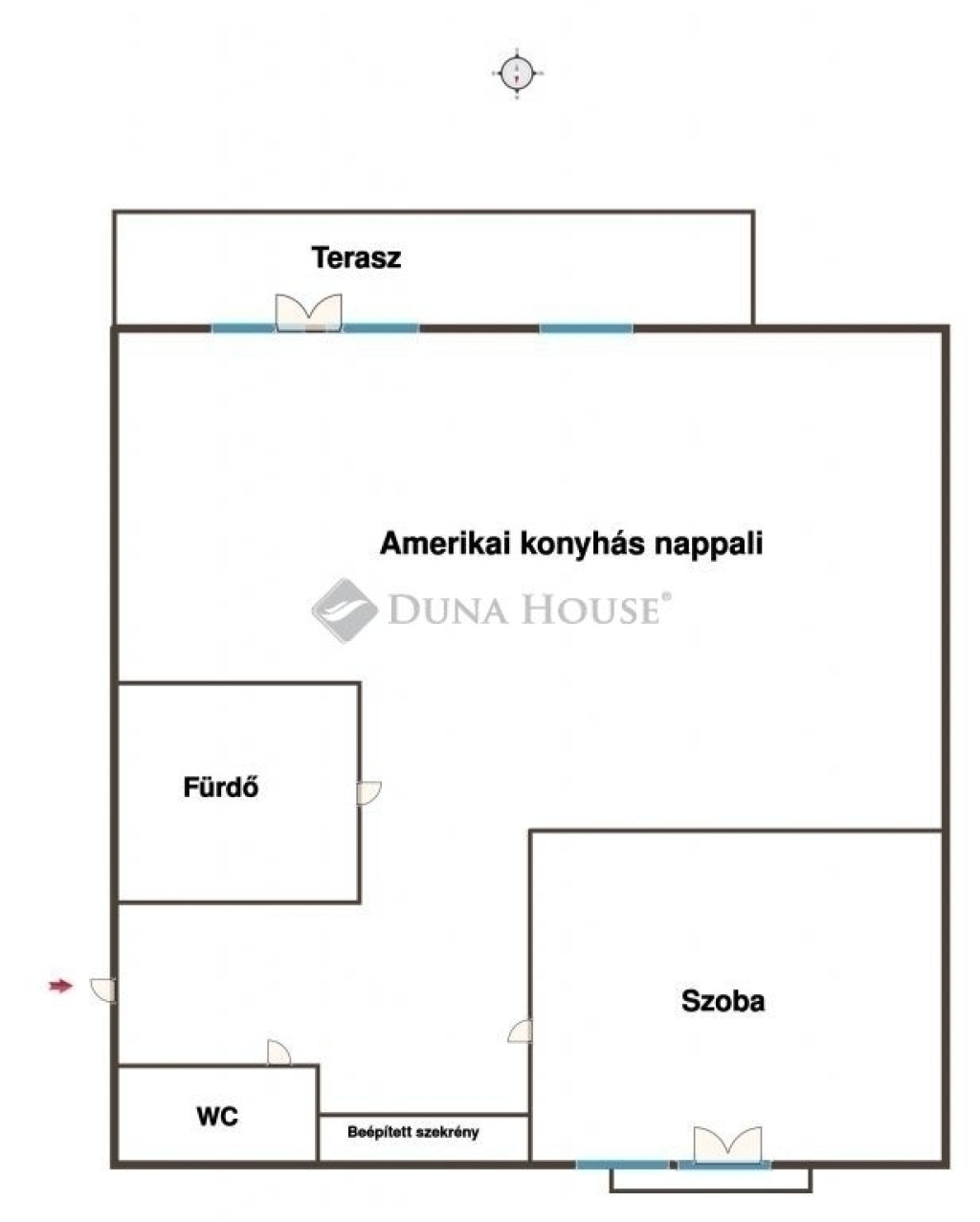 A lakás egyik nagy előnye a déli fekvésű terasz, amely egész nap világos, napfényes hangulatot biztosít.