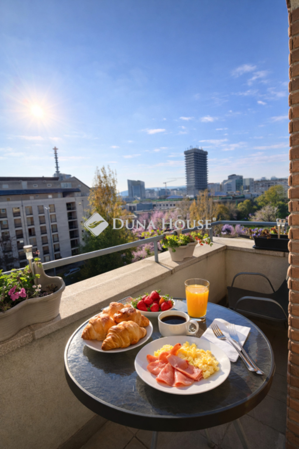 A lakás egyik nagy előnye a déli fekvésű terasz, amely egész nap világos, napfényes hangulatot biztosít.