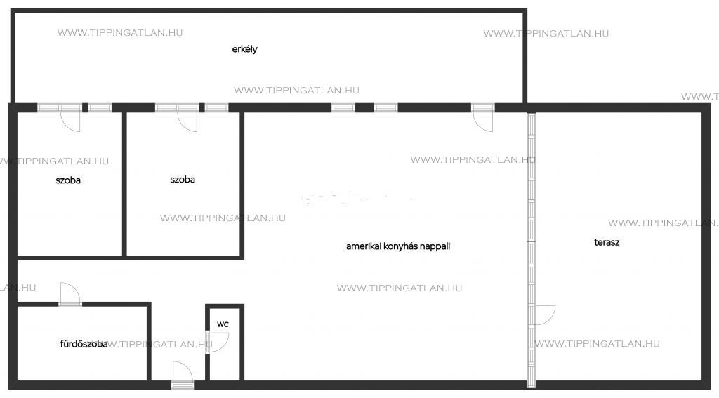 A lakás 69nm-es, kiváló beosztásának köszönhetően megtalálható benne egy tágas amerikai konyhás nappali-étkező, 2 szeparált háló, előszoba, toalett illetve a fürdő is.