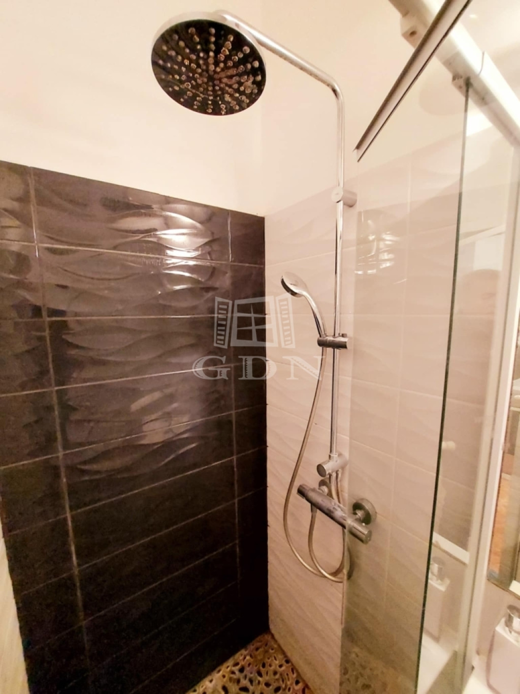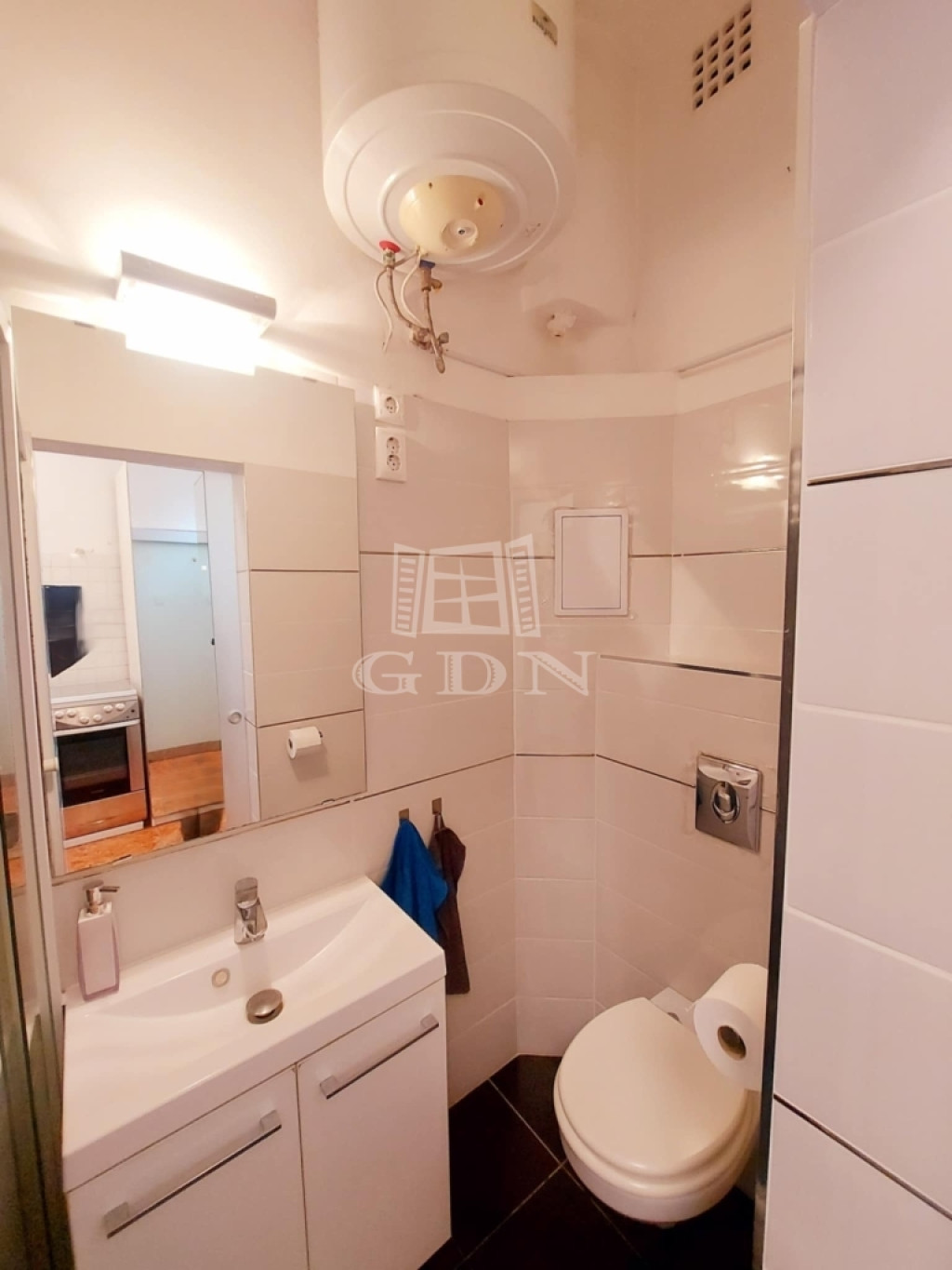 A zuhanyzós Wc egy kézmosóval ellátott, valamint villanybojler is itt kapott helyet. A lakáshoz tartozik egy pince-tároló is, lakóközösség rendezett.