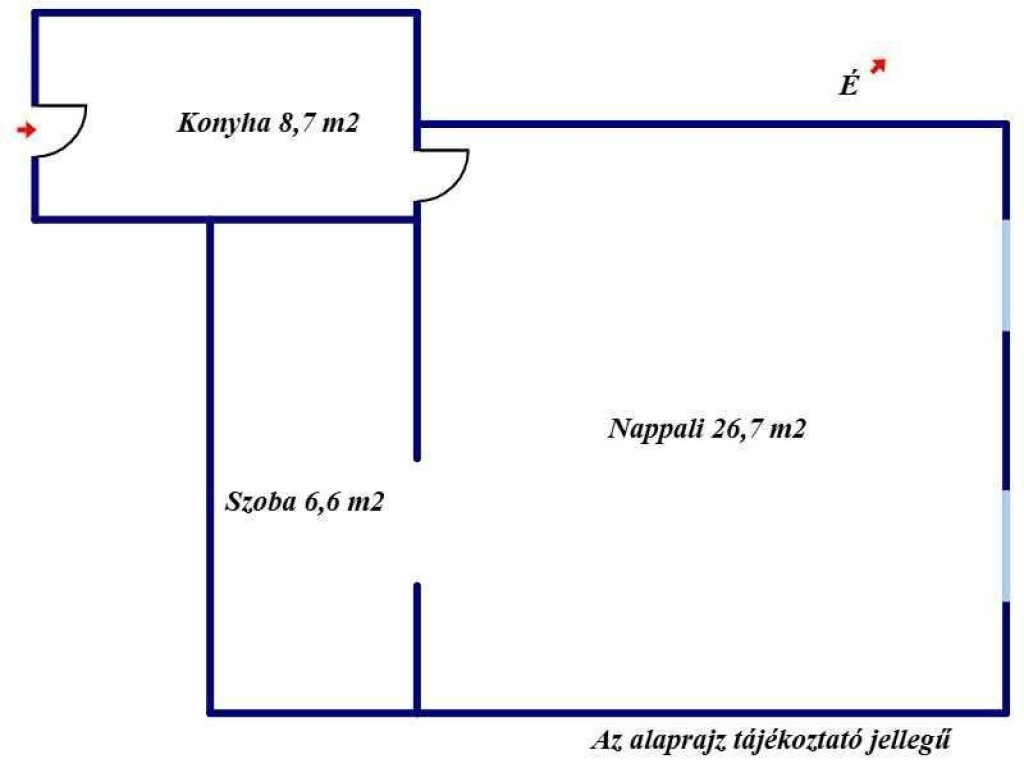 Tulajdoni lap szerint 1 szobás, de kialakításra került egy 6,6 nm-es HÁLÓFÜLKE beépített gardrób szekrényekkel, mely akár harmonika ajtóval vagy függönnyel leválasztható.