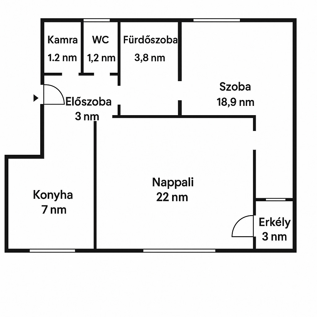 Belépve a 3 nm-es előszobába érkezünk, bal oldalon kapott helyet az 1.2 nm-es kamra, és a szintén 1.2 nm-es külön nyíló WC.