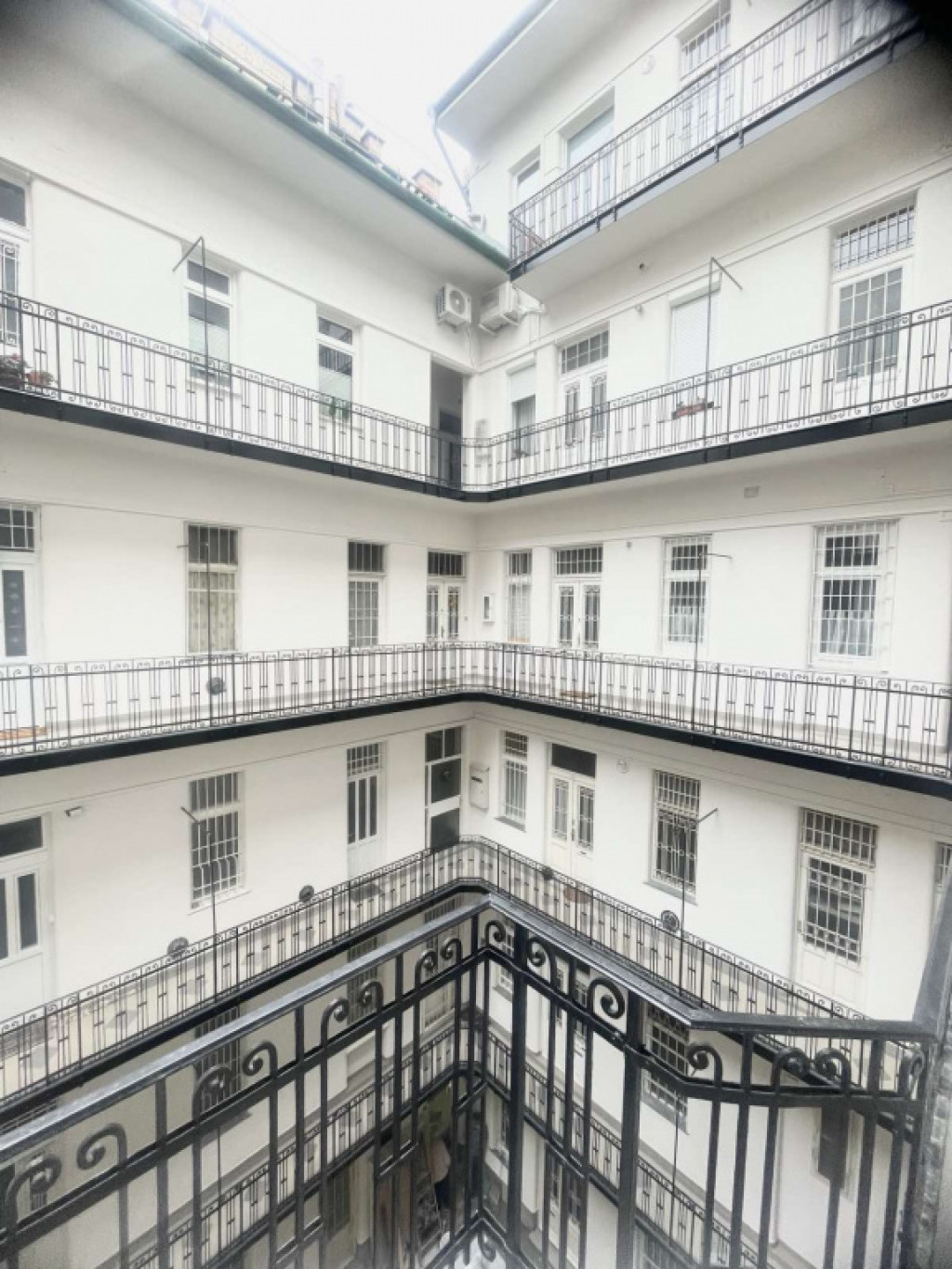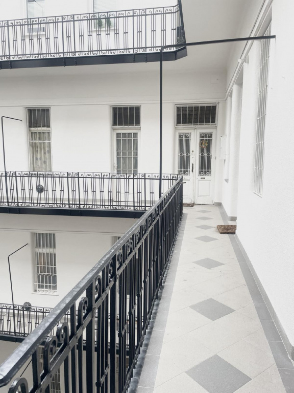 a belső udvar jelenleg felújítás alatt áll, új burkolatot kap a társasház, a függőfolyosó falazata már frissen festve!