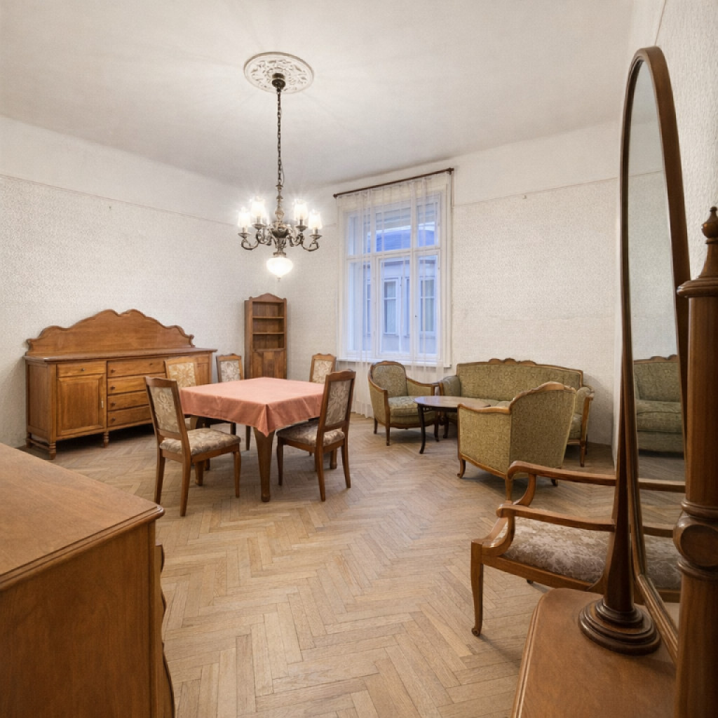 A lakásban található bútorok túlnyomórészt a 20. század első feléből származó darabok.