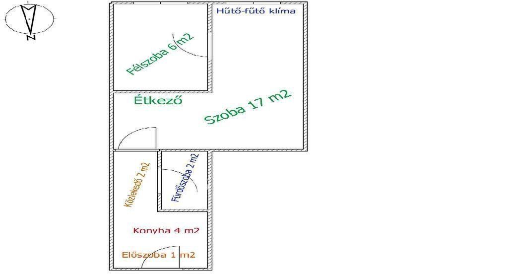 Az első emeleti lakásban található 1,5 szoba, egy praktikus kis konyha és zuhanyzós fürdőszoba. A fűtés gáz-konvektoros és 2025-ben egy modern hűtő-fűtő klímával is bővült.