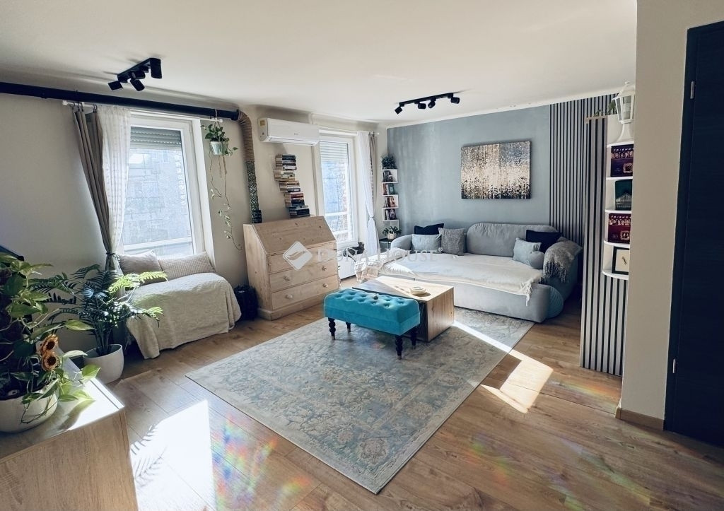 Hat emeletes ház legfelső szintjén egyedül tündököl ez a mini loft.