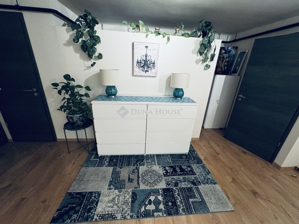 A mini loft emeleten az egész felvezető lépcső, illetve a zárt közlekedő (télikert) a társasház szabályainak megfelelve alakítható. Jelen esetben (videón látható) elszabadult a varázspálca, de bármikor vissza lehet térni a letisztult állapotához.