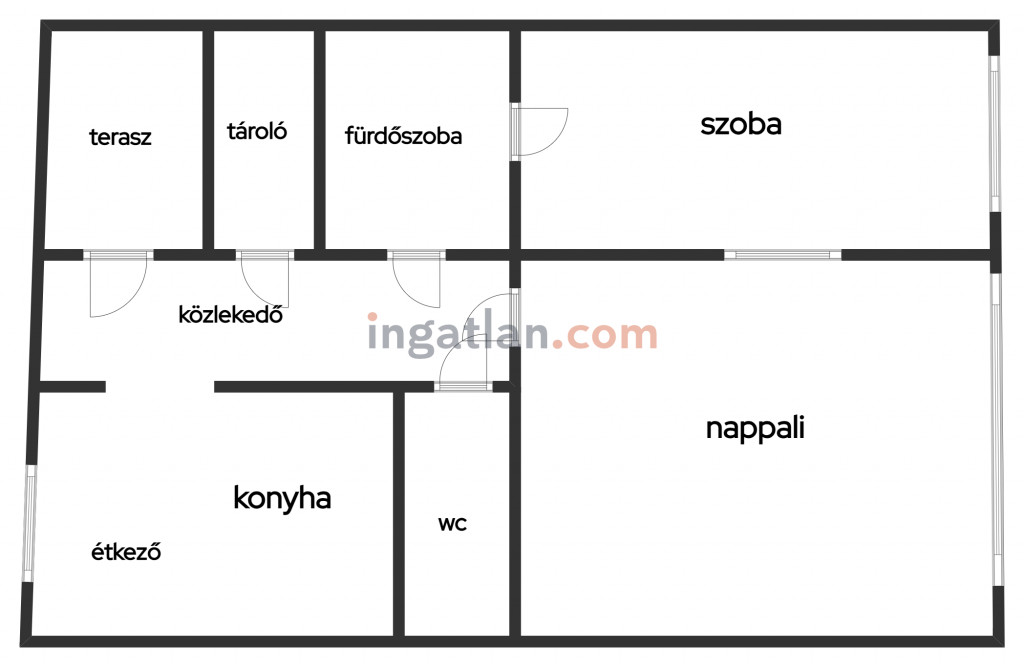 A lakás szeparáltan, zárt folyosóról nyílik, elhelyezkedése magasföldszinti.