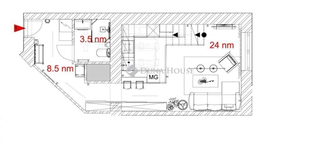 Részben bútorozott, kérésre teljes bútorzattal is elérhető (külön megállapodás szerint) Zuhanyzós fürdőszoba 1. emelet, galériás kialakítás